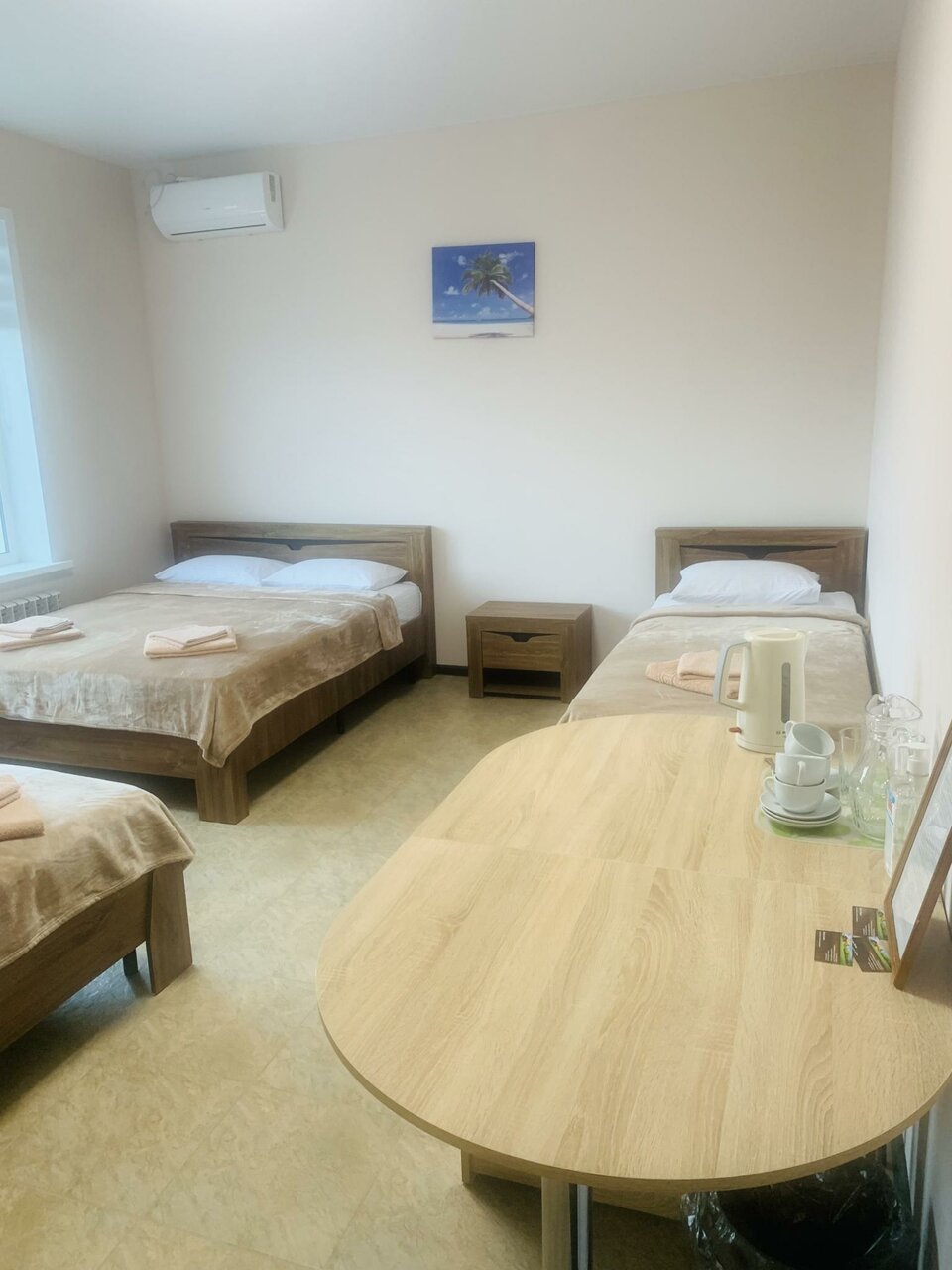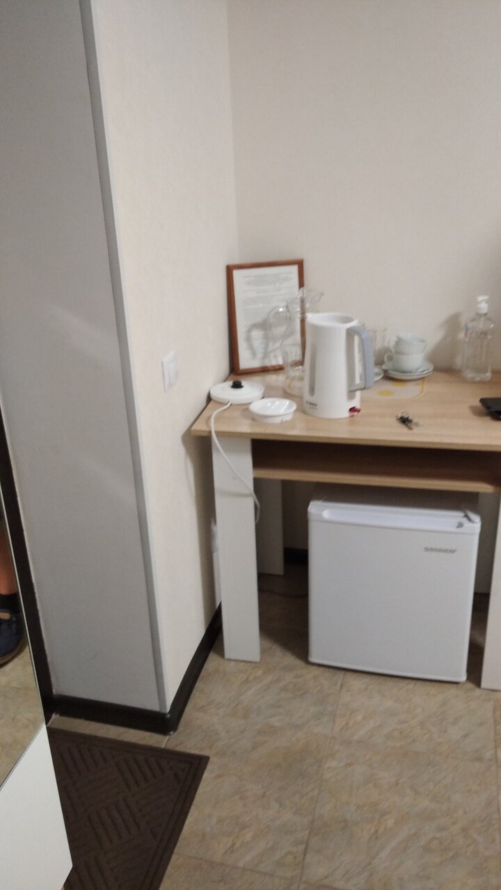 Хороший, чистый отель, удачное расположение (напротив магазин ‘Пятерочка’). Останавливались в 4-местном номере (одна 2-х спальная и две 1- спальных кровати). В номере холодильник, микроволновка, чайник, в ванной полотенца и мыльные принадлежности.