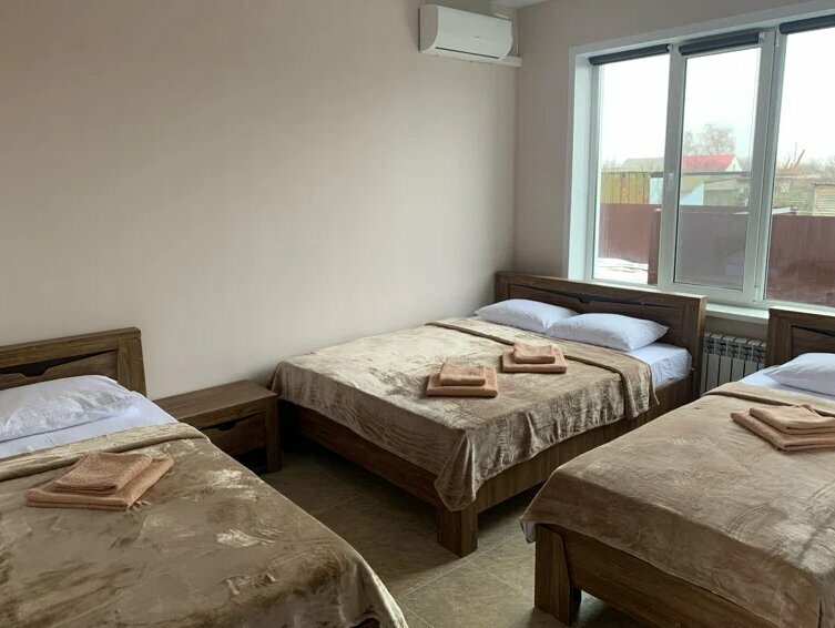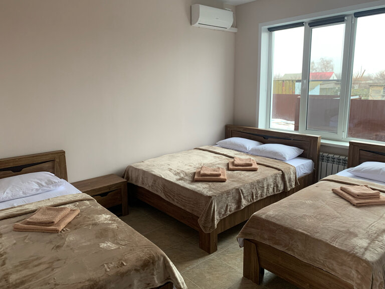 Остановились на ночь по пути в Ставрополье. Номер на четверых. Хорошее расположение в дали от трассы, по пути понтонный мост через Дон. Территория небольшая, видно что планируется расширение. Есть парковка, беседка, детская площадка. Внутри номера всё необходимое есть: чайник, холодильник, кондиционер. Забронировал на обратный путь)