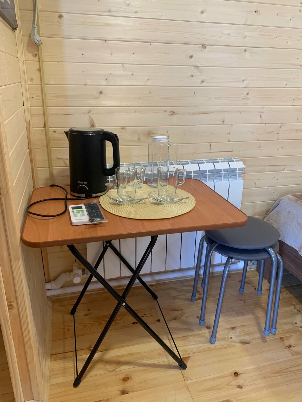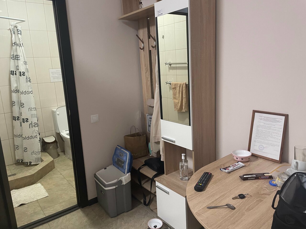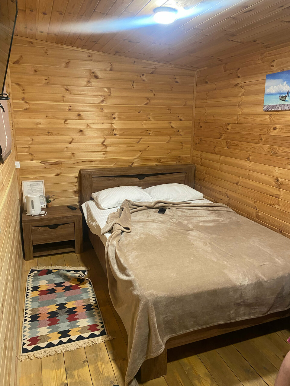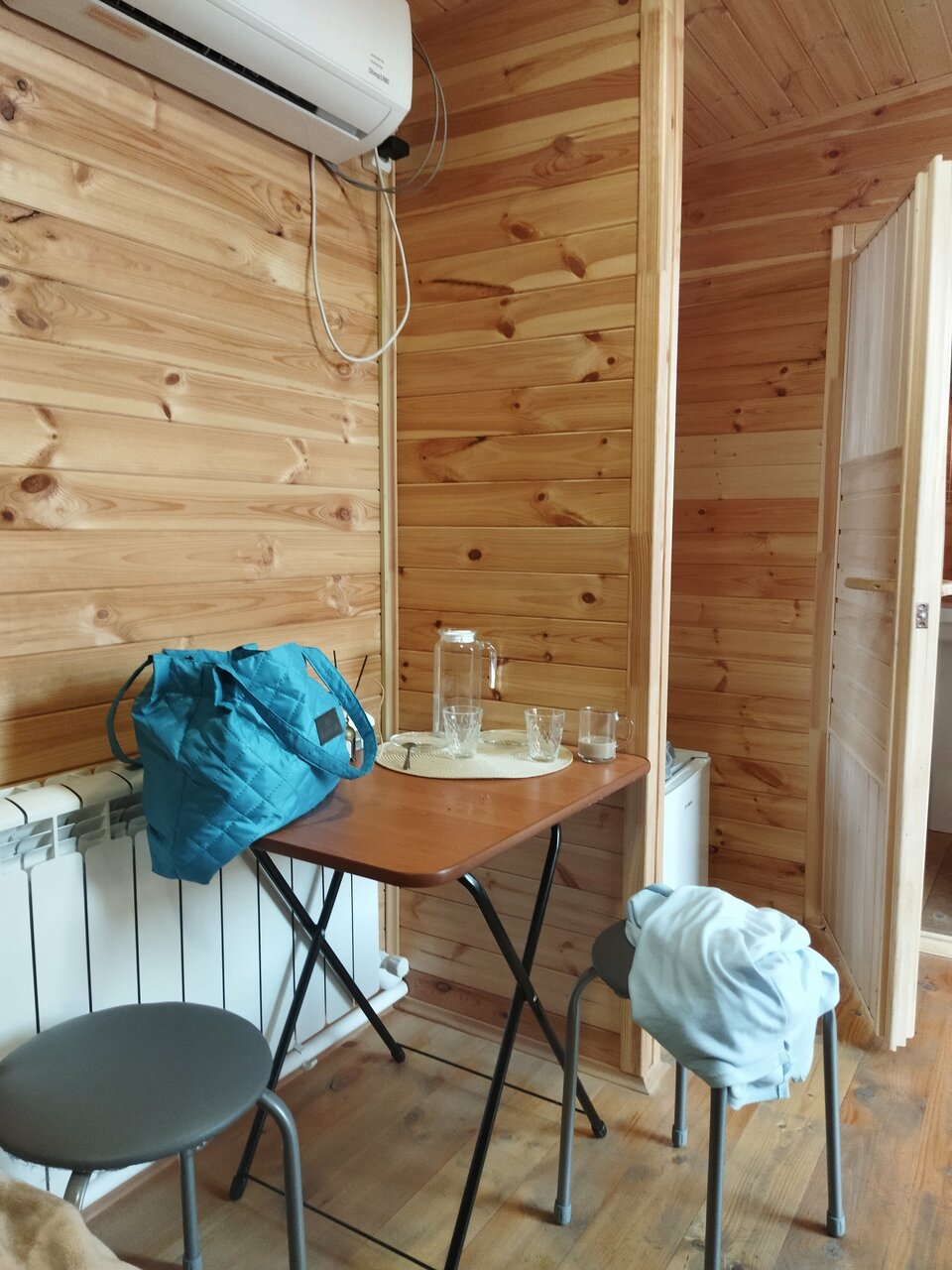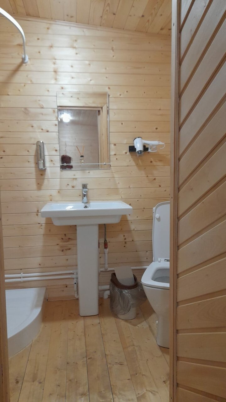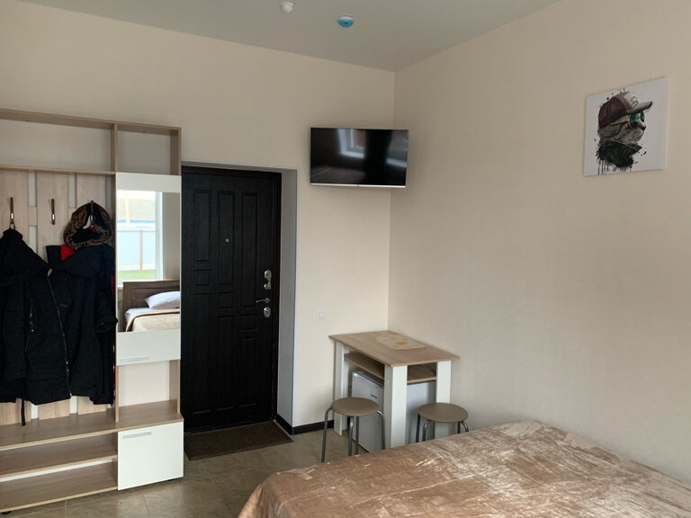 2500 за номер в виде бытовки это во первых дорого не курортная какая то зона, свиду беглым вглядом вначале норм . Но потом в ходе эксплуатации это ужасно. Сам вагончик весь ходуном ходит под ногами когда просто идёшь. Кондиционер , отвратительная вибрация по всей стене от работы. Расположение телевизора справа как в нашем случае кто додумался повесить как его смотреть? Обеденная зона это что то с чем то . Эргономически обсалютно не продуманная планировка. Не рекомендую . За такие деньги в бытовке жить.