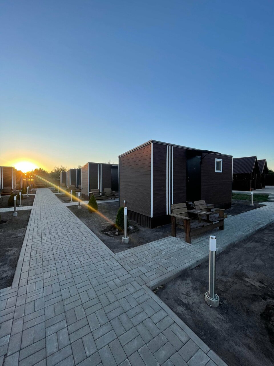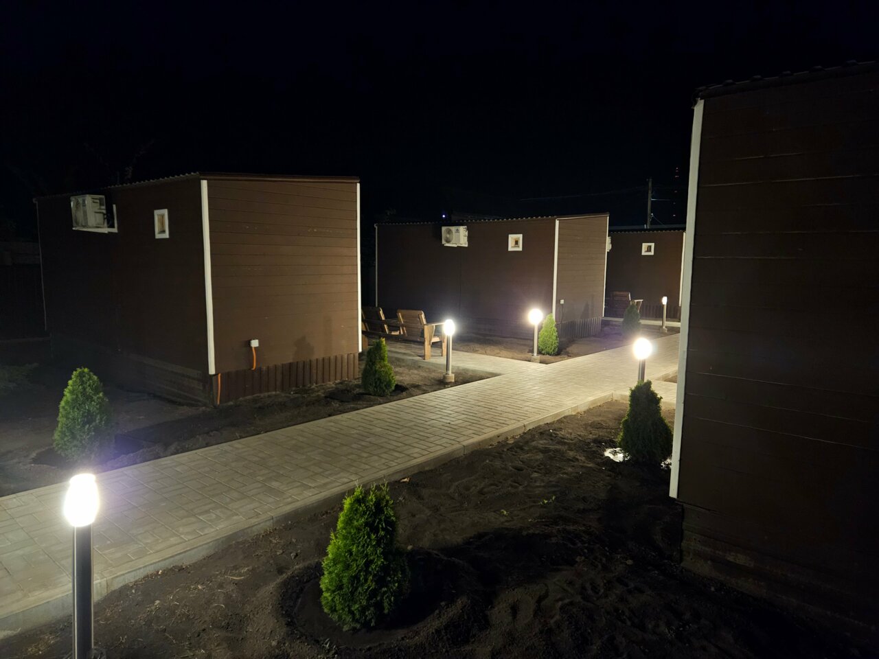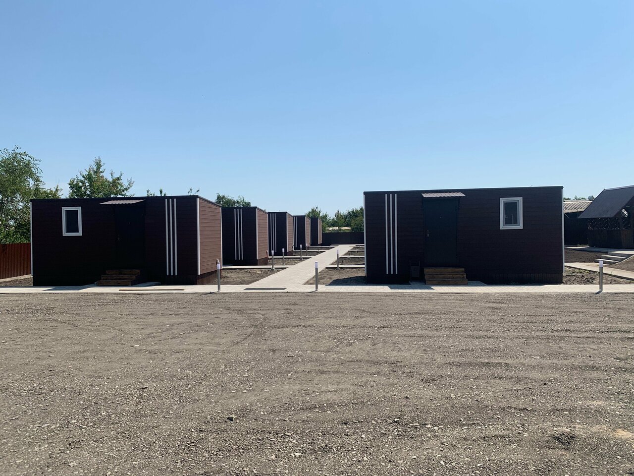 Удобное расположение,чистые домики,новые чистые полотенца и халаты,есть чайник,холодильник, кондиционер,фен.все продумано до мелочей.приятно удивило наличие чая,сахара, посуды.приветливый персонал.стоянка для авто просторная,напротив магазин Пятёрочка, также есть доставка еда.