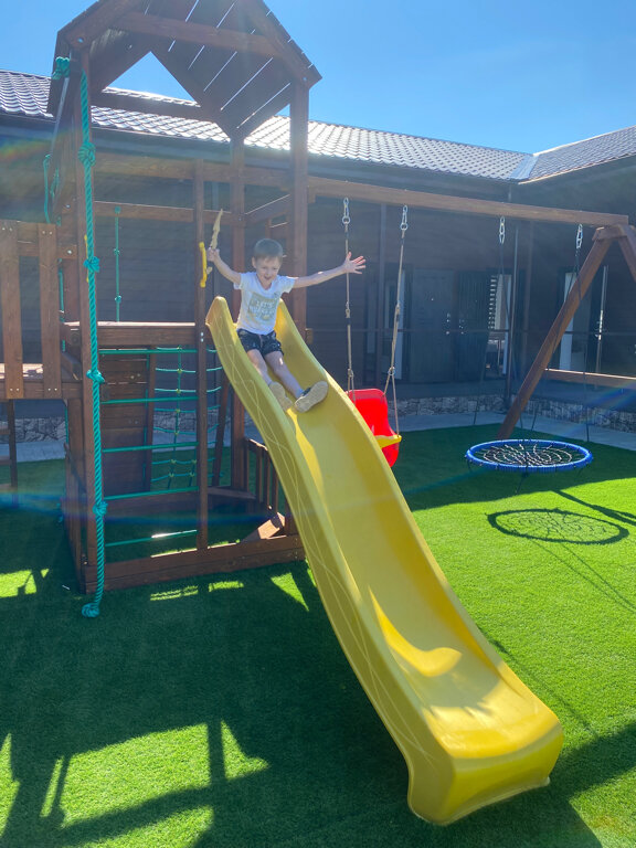 Отличное место для отдыха. Дети тоже в восторге. В 3 номере есть детская кроватка, если Ваш ребёнок крутится всю ночь то это идеальный вариант. На территории есть детский комплект. Останавливаемся 2 раз подряд. Чистота в номере идеальная.