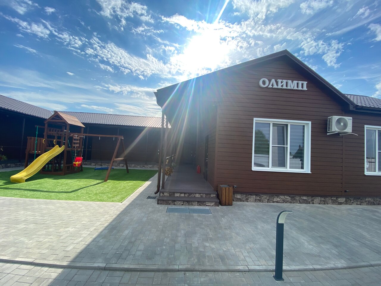 Хорошие чистые номера, приветливый персонал, единственный минус мало розеток, уютный дворик где дети могут поиграть и покачаться на качелях, территория огорожена.