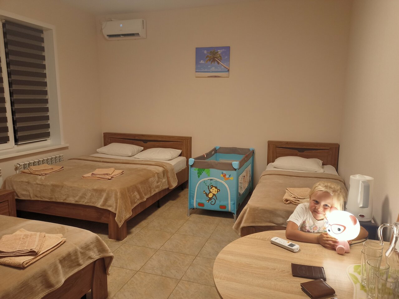 Отличный чистый номер, в нем была детская кроватка, все идеально выглажено и чисто. Так же был холодильник, чайник, стаканы. Ночевали там по пути в Краснодарский край и здесь же остановимся на обратном пути. Очень приветливая женщина встречает!
