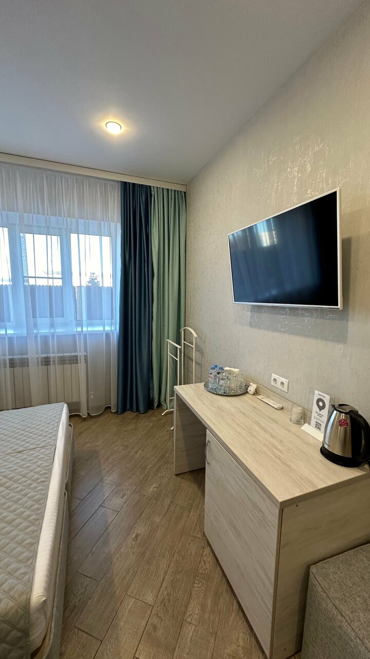 Гостиница суперская! Наконец-то удалось реально выспаться и отдохнуть после очень долгой дороги. 1) удобнейшие матрасы 2) Чистейшее белоснежное белье и сам номер очень современный и чистый. 3) номер большой, душевая огромная, 4) шторы блэкаут 5) есть закрытая парковка 6) соседей не слышно, за окном тишина. 7) есть вся необходимая бытовая техника и наборы для душа. Ехали в гостиницу по темноте. Все отели были забиты. Эту гостиницу нам посоветовали в одном из отелей куда мы не попали. Немного напугал понтонный мост через Дон, но в целом ехали от трассы недолго, дорога хорошая. Не пожалели. Лучше проехать и спать в хороших условиях, чем в гадюшниках у трассы.