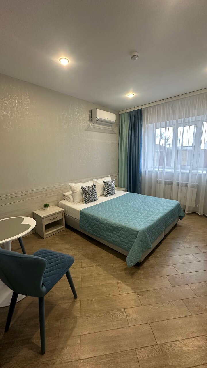 Отличный новый отель, где все продумано для отдыха, в номере есть все одноразовые принадлежности! Просто супер! Спасибо за такую замечательную организацию и внимание ко всем мелочам! Машину поставили во двор, беседки и качели во дворе! Мебель и постельное белье- все идеально. Чистота и уют! Рекомендую!