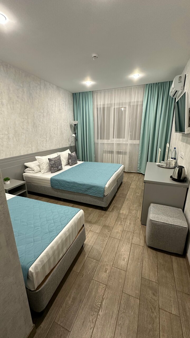 Номер супер всё новое чистое,незашарпано,персонал приветлив,пастельное бельё белоснежное,отличный матрац ,после дороги самое то ,стаканы ,чайник,и банные пренодлежности в комплекте,заехали по дороге на море отдохнуть ,но было желание остаться.