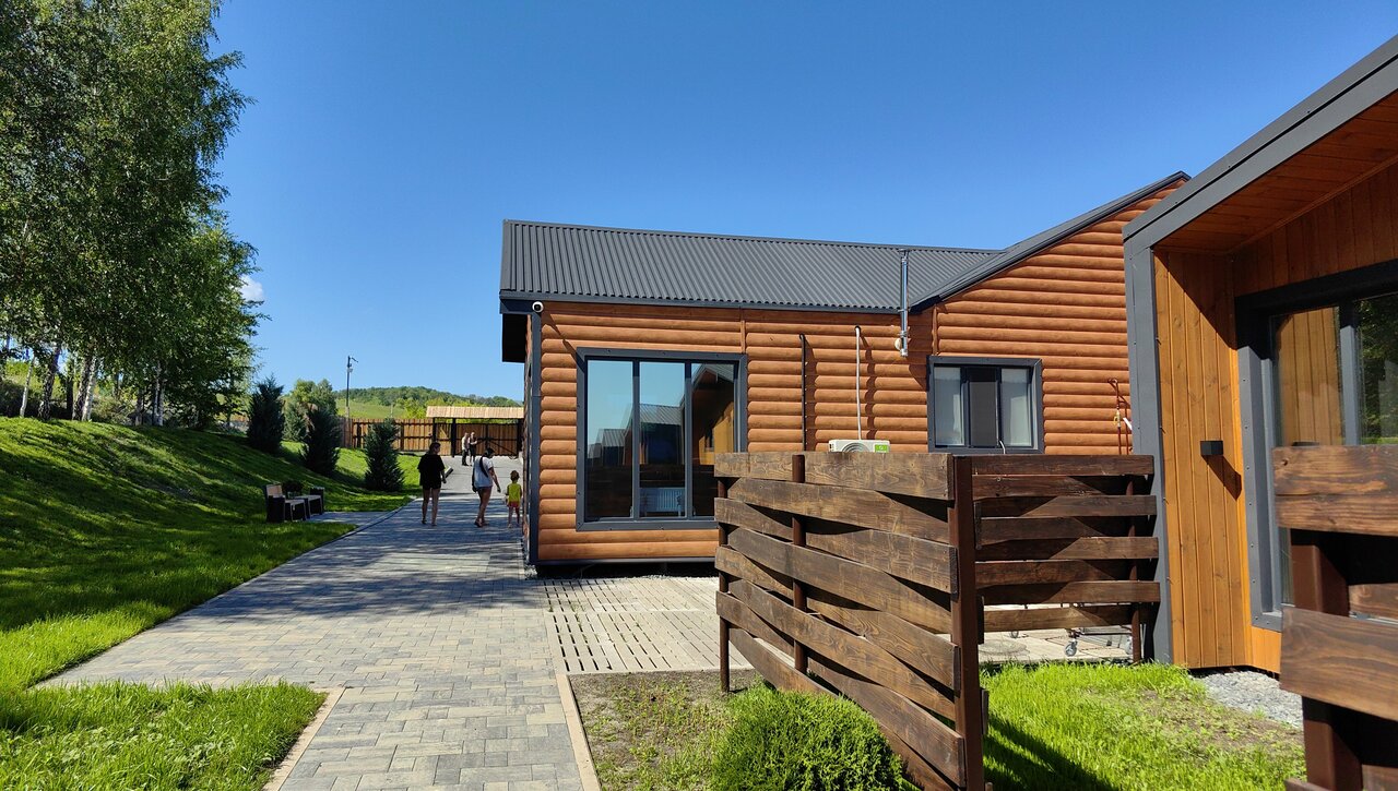 Отличное местечко Уютные домики со всем необходимым для комфортного проживания. Есть небольшая кухня, веранда На территории детская площадка. В парке живут милый ослик, козочка, уточки, лошади и петушок) бегают зайцы. Всех можно покормить Муж порыбачил, дочка наигралась с животными Кафе на территории, еда вкусная, цены не кусаются) Процветайте с радостью вернемся еще!