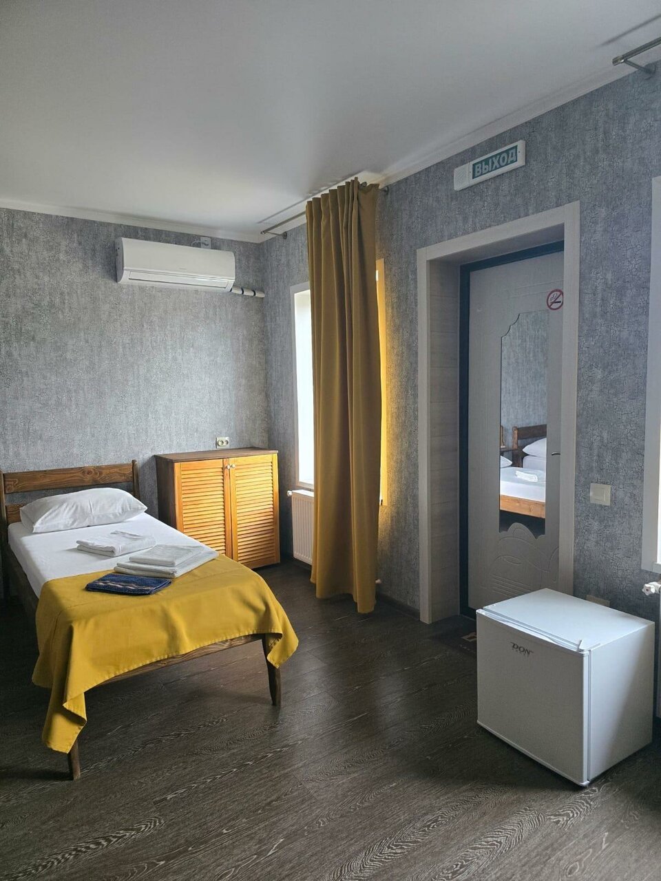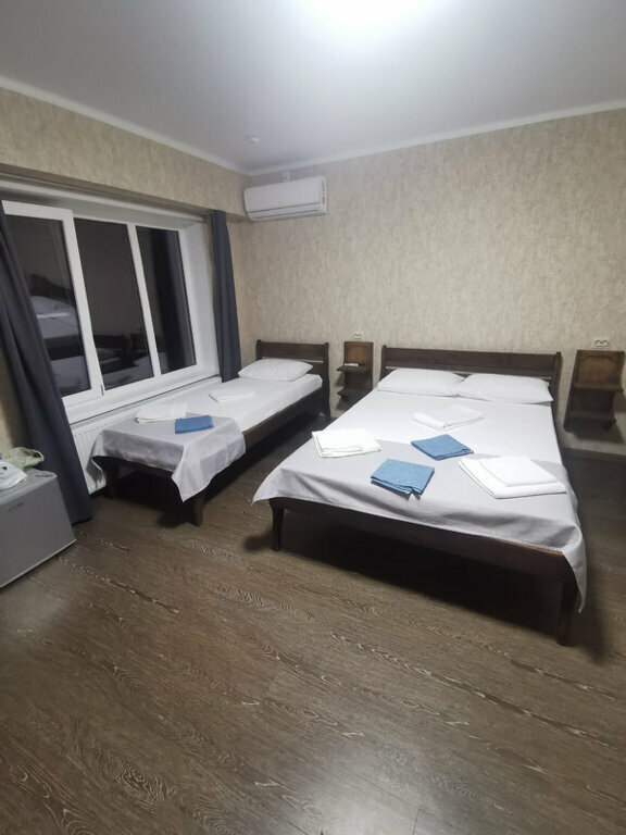 Были 10.06.2023. Остановились случайно. Спасибо Яндекс! Двое взрослых, двое детей! Радушные администраторы. Новые, чистые номера в отдельных домиках. Не знаю как в других домиках, но в нашем хоть пляши… Четыре кровати (2 одноместные, одна двухместная) . Полотенца, мыльно-рыльные принадлежности, телевизор, вода, чай/кофе/сахар. Электрический чайник, кондиционер, вай фай, минихолодильник, огромный санузел с приличной душевной +фен. Современный интерьер. Не далеко от трассы, но тем не менее шума от дороги в номере не слышно. Имеется мини кухня, можно погреть еду в микроволновке либо остудить и сохранить в большом общем холодильнике . Отель новый. В перспективе расширение (кафе, стойка администратора и т.д.) . Буду рекомендовать своим знакомым/друзьям. Цена приемлемая.