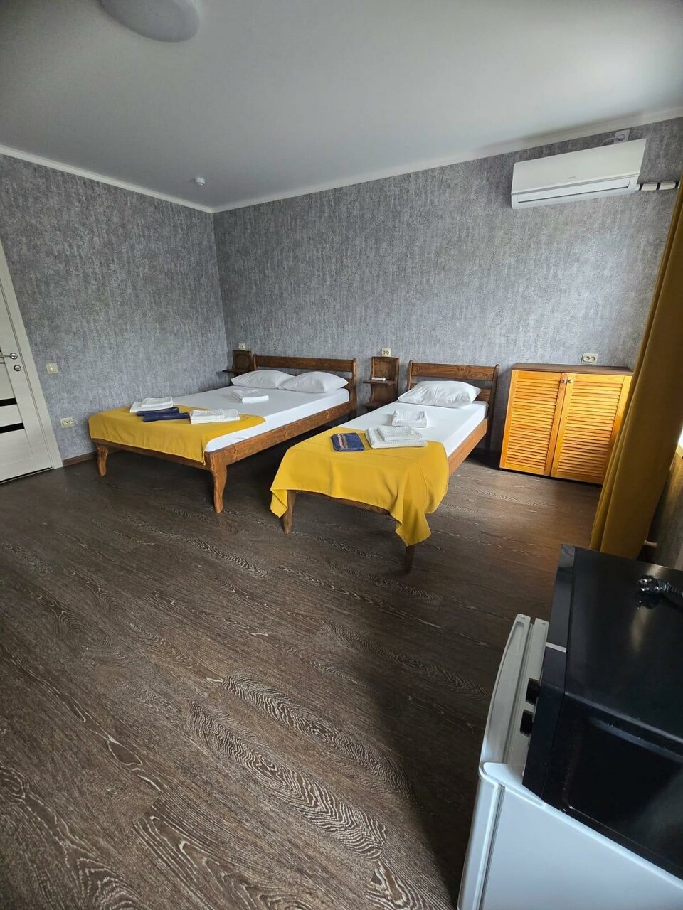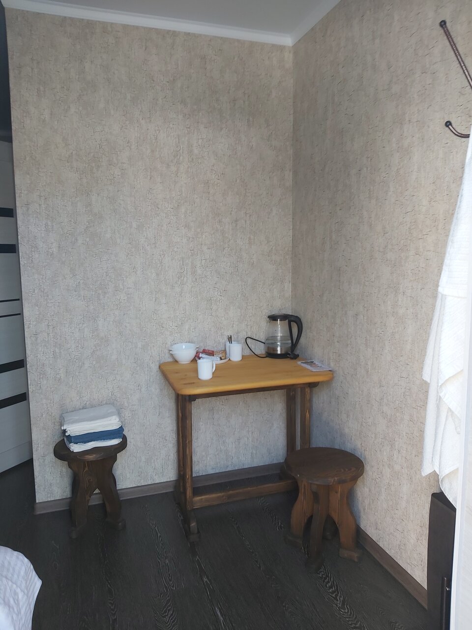 Прекрасные номера, очень чисто, всё новое. Администратор очень доброжелательная, приветливая, гостеприимная. Есть место для приготовления пищи. В номере чайник, микроволновая печь, холодильник, чайный набор с кофе и сахаром. С удовольствием приедем ещё