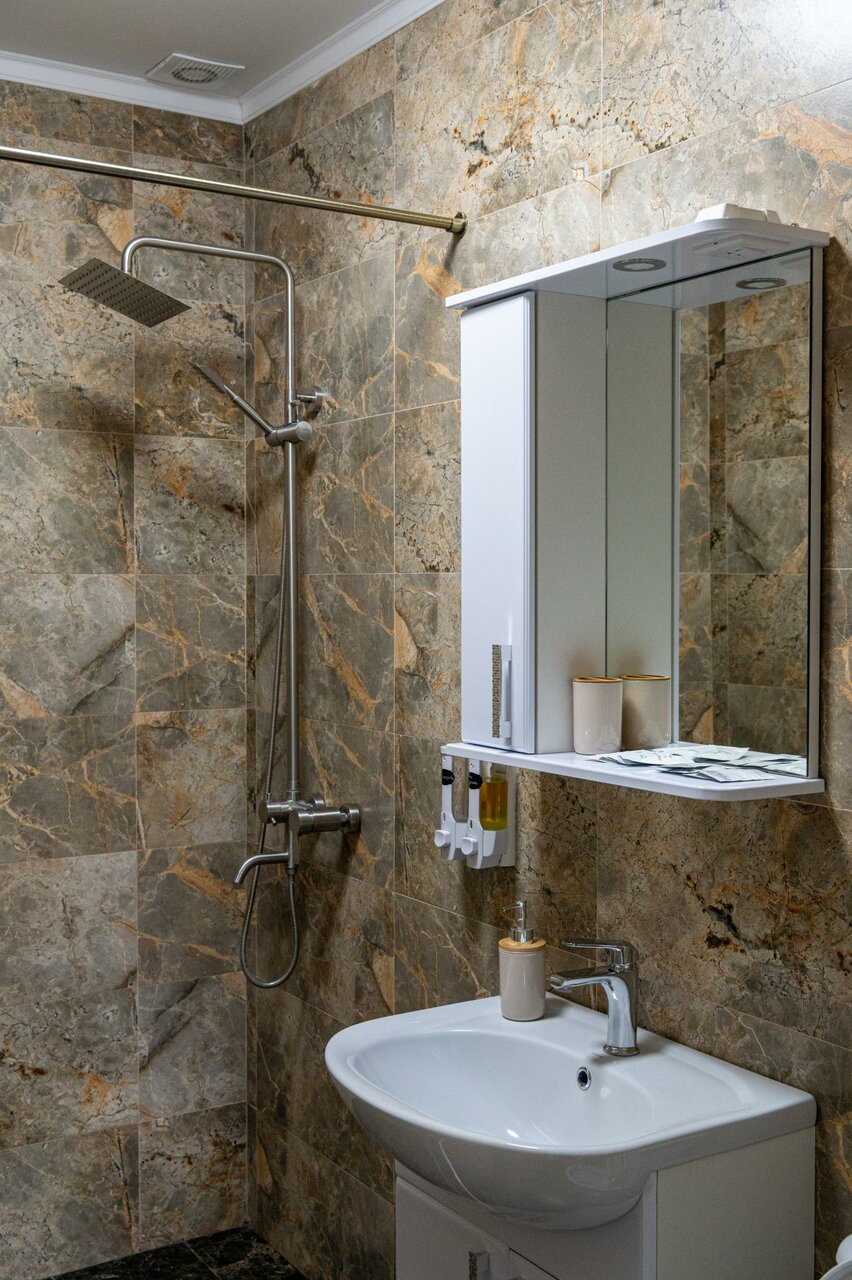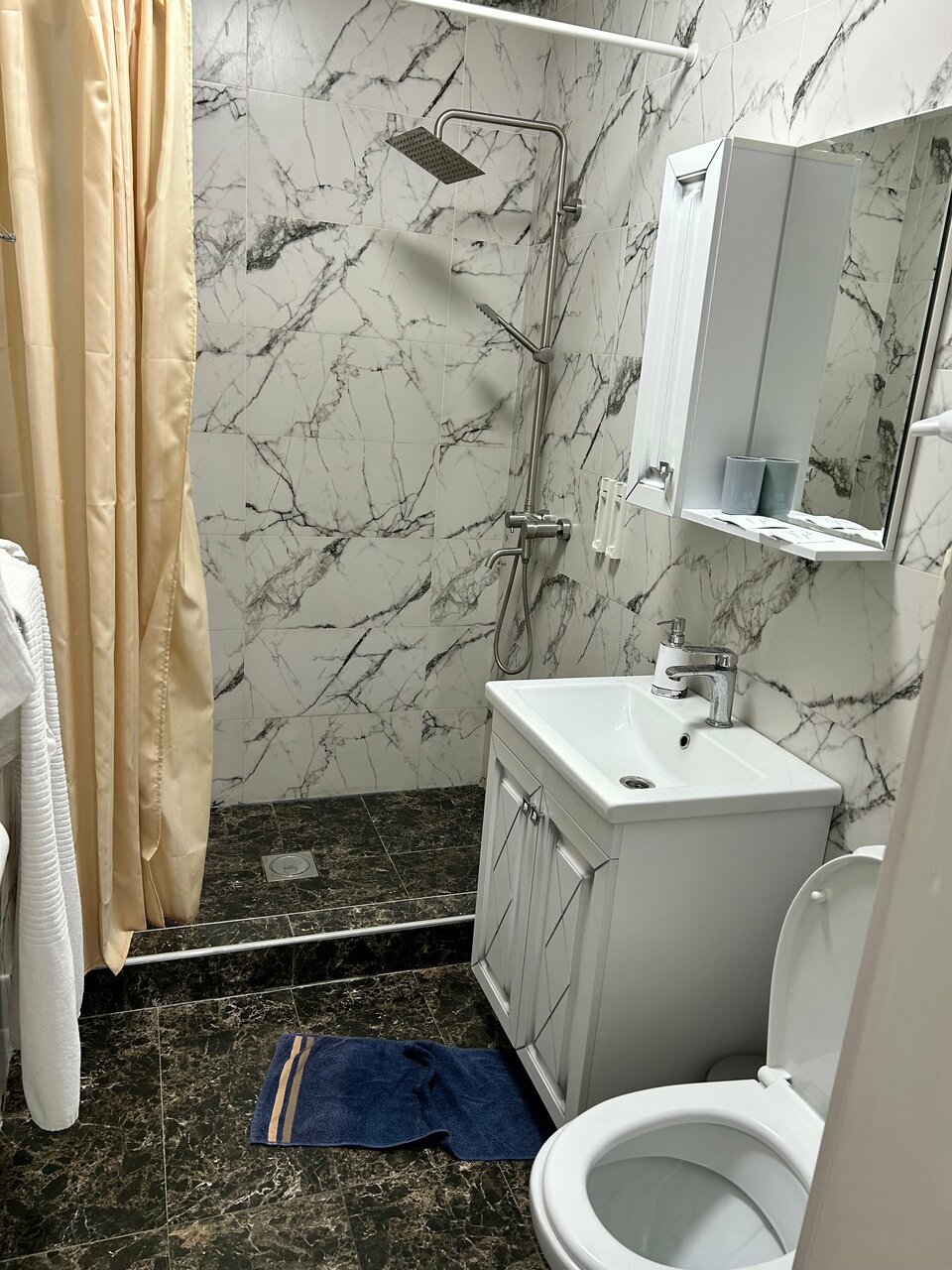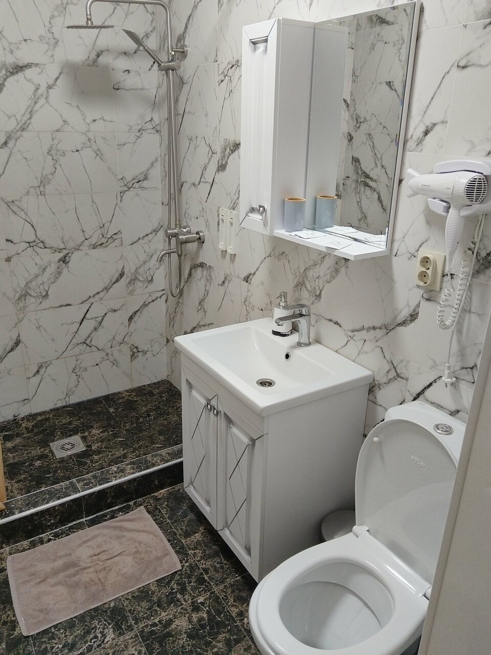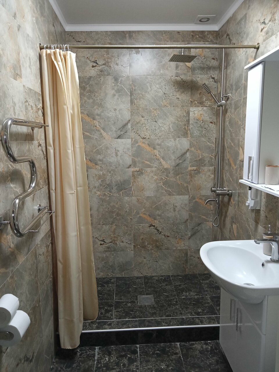 Добрый вечер. Дважды останавливались в этом гостевом доме. Комфорт на оценку отлично. Санузел совместный, с хорошей сантехникой. Персонал, приветливый и дружелюбный.