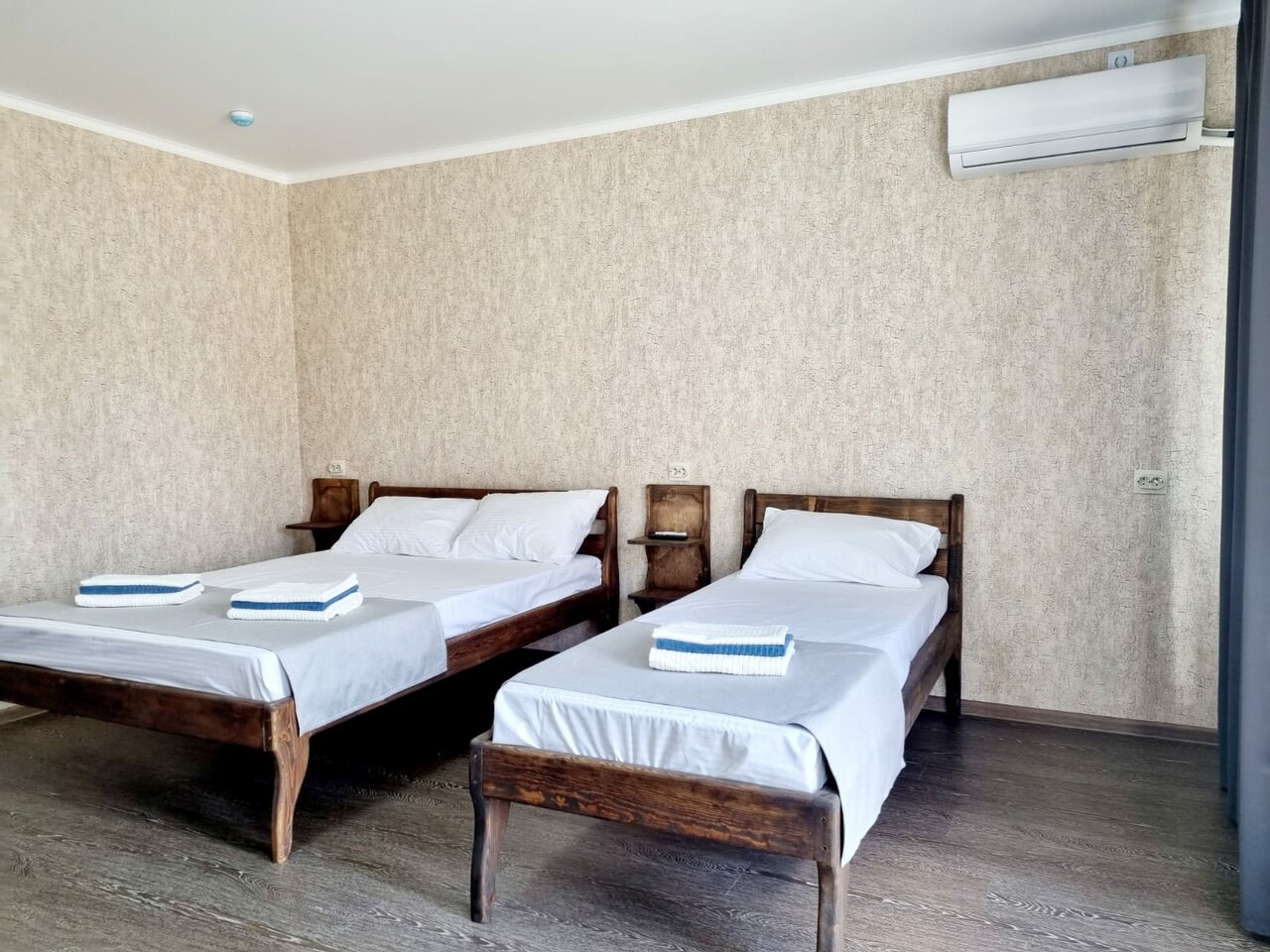 Всё понравилось! Огороженная ухоженная территория с бесплатной парковой для машины. Закрытая беседка-кухня с панорамным остеклением, где можно погреть еду, посидеть покушать. Новые уютные номера. Пол в туалете с подогревом, хороший душ, чистое белье и полотенца. Чуть было жарковато ночью, открывали окно. Хорошо, что есть сетка на окне. Есть и кондиционер, но мы им обычно не пользуемся) Удобное расположение по дороге к морю, как раз на пол пути, вдали от основной трассы, так что не слышно машин. С удовольствием остановимся здесь снова, если соберёмся опять к морю