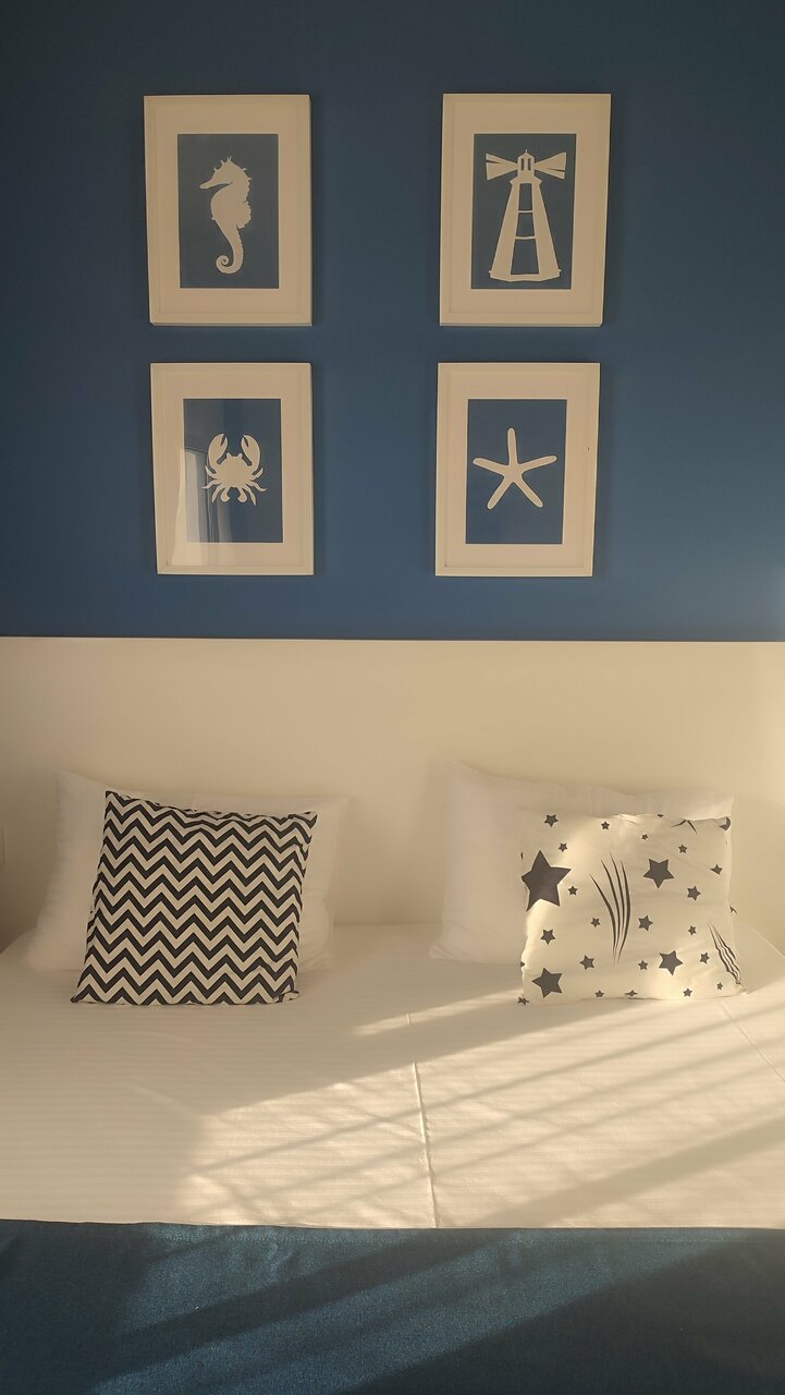 Номера очень красивые, в морском стиле. Все новое, чистое. В номере чайник, стаканы, утюг — все необходимое. Для полного счастья не хватает шторки со стороны двери. Все видно с улицы, особенно вечером, когда в номере горит свет. И спать светло. Есть детская площадка, красивая и удобная зона барбекю. Большой бассейн. Из минусов — недружелюбная администратор Наталья. Мало того, что в наше отсутствие залезла в шкаф, чтоб забрать лишние полотенца (оплачен был трёхместный номер, жили вдвоём, она решила, что полотенца лишние, хотя оплачен номер как за троих) ,на наш вопрос, по какому праву она залезла в шкаф, вместо извинений она начала хамить и огрызаться. Итог — номер отличный, только администратор испортил все впечатления