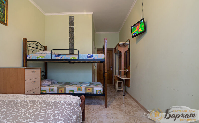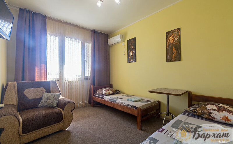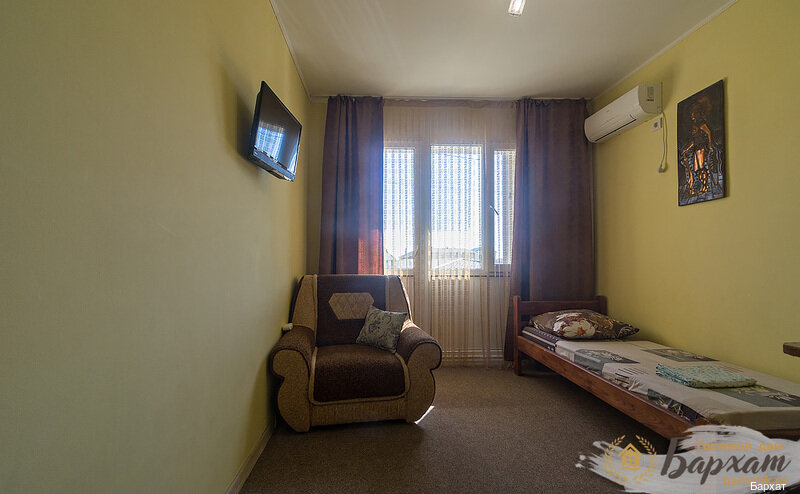 Отличный гостевой дом. Комфортные и уютные номера, в которых есть всё, что нужно для отдыха. Изысканный интерьер. Во дворе дворик с детской плащадкой, где вечером взрослые могут пожарить шашлык, покурить кальян и при этом дети играют под присмотром. Персонал отзывчивый, встретили ночью, всё показали, напоили чаем. Хозяева Бархата очень хорошие люди! Искренне помогут и выполнят любую просьбу. Мы были в сентябре столовая в Бархате не работала, но это вообще не проблема, в 2 мин ходьбы набережная с кафе, барами, столовой на любой вкус и ‘кошелёк’. А какое тут море!!!!!! Чистейшая прозрачная вода и песчаный пляж. На пляже чисто. Спасибо за отдых! Если снова приедем на отдых в Крым, то только сюда!
