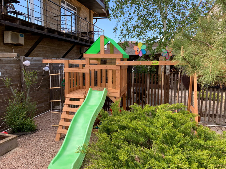 Услуги: — Номера от 2000 ₽/ночь с кондиционером, холодильником, ТВ, Wi-Fi, феном, чай/кофе. — Собственный песчаный пляж, детская площадка, зона для пикника. — Бесплатная парковка, общая кухня, прачечная, уборка. — Трансфер (аэропорт/вокзал), круглосуточный Wi-Fi, пляжные полотенца, летняя веранда.