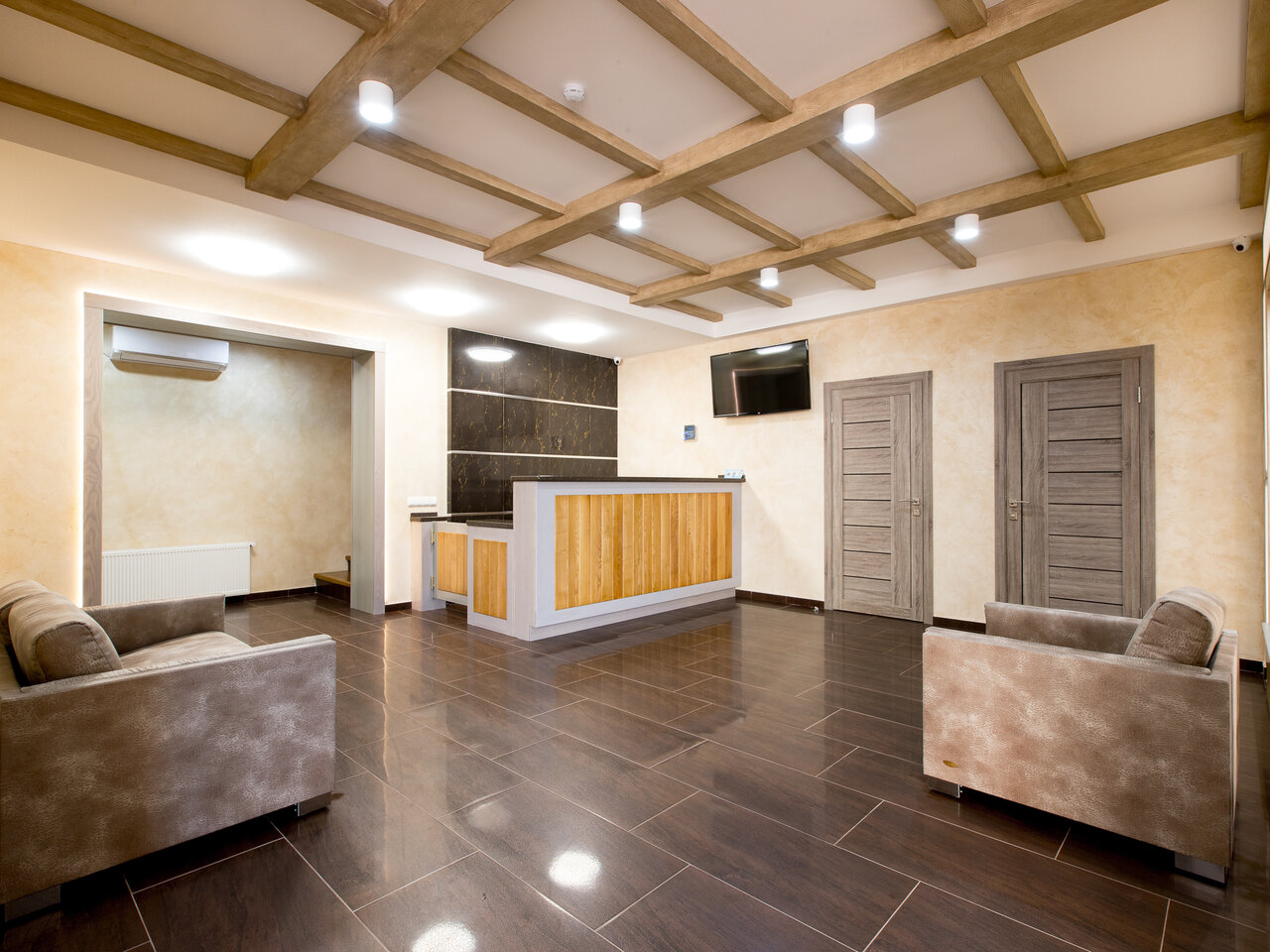 - Современная мебель и чистые полотенца.