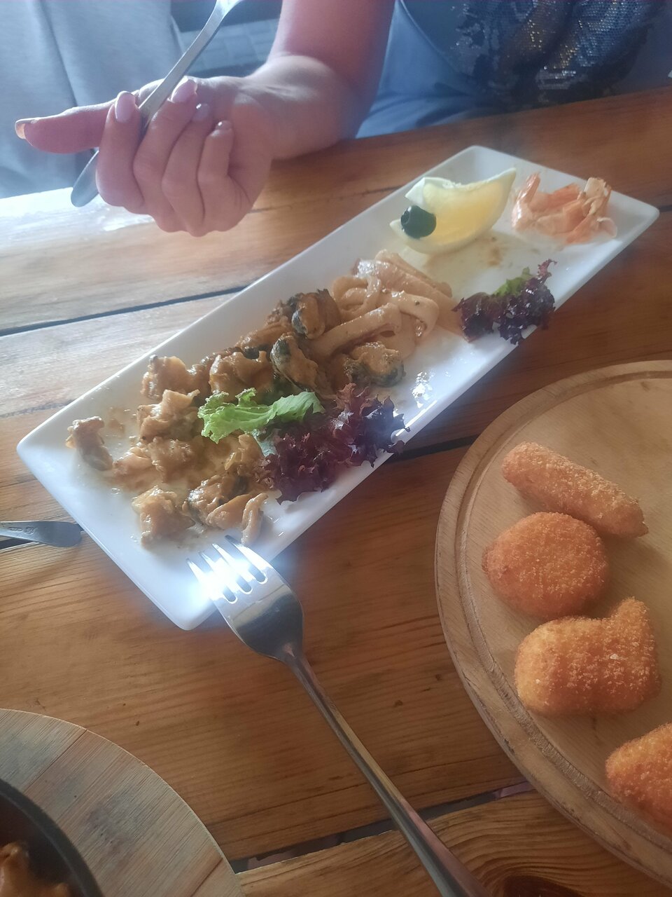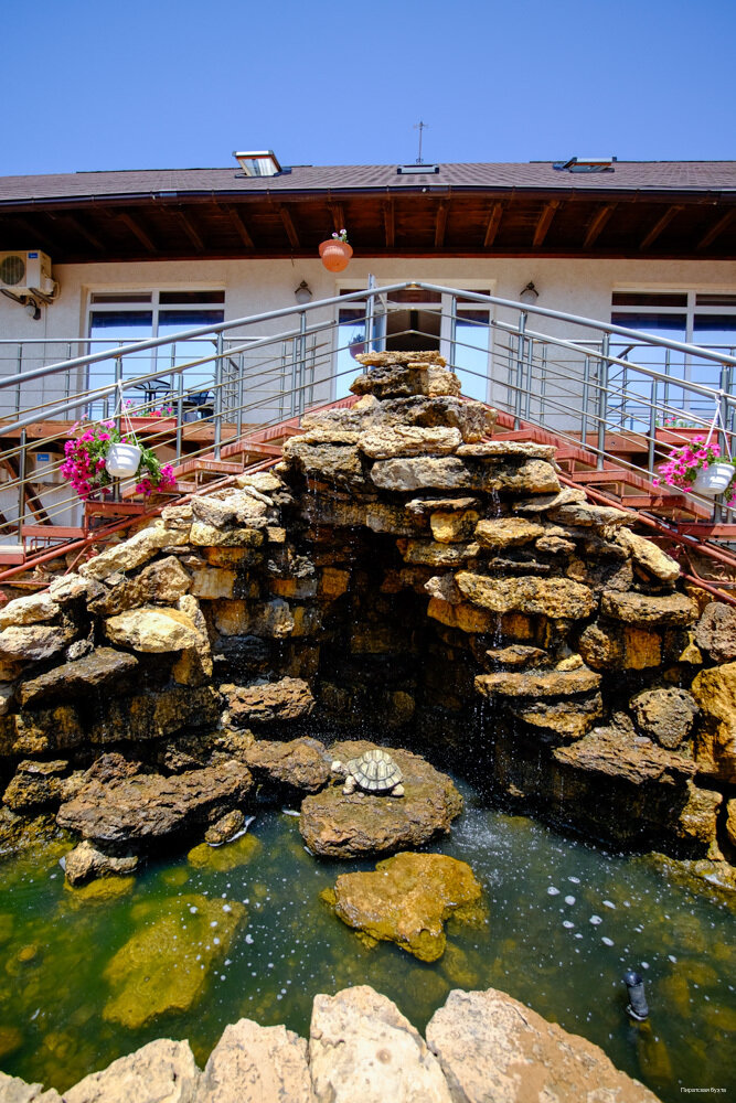 Очень вкусная еда в кафе-ресторане при отеле,кушали пасту,сырники,шашлык,овощи на углях(моя слабость),сендвичи,свинина по-царски и многое другое-вкуснота! Весь персонал,как и хозяева гостеприимные.Номера чистые и уютные,правда кондиционер странно работал и межкомнатная дверь закрывалась с трудом с первого раза,но это мелочи))так же,если вы не крымчане,то могут быть проблемы с мобильной связью. В целом всё понравилось,атмосфера домашняя,есть мангальная зона, пляж рукой подать,в 10 минутах ходьбы аквапарк ‘Банановая республика’. Периодически приезжают cover группы.Для детей масса развлечений рядом с отелем(батут,дарц,машинки,игровые автоматы,тир). Есть рядом столовая,цены пониже,но и еда обычная,можно и дома такую покушать,два ресторана.Кроме моря,вечером гулять негде,но,если вы едете отдыхать и релаксировать,то вам понравится)На пляже свободно,мест предостаточно,но это из-за ситуации в Крыму(мы были в период с 16 по 25.07.23)