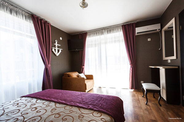 Остановились в этом отеле в конце июля до начала августа. Все супер. Хозяева — молодцы. Дружелюбные и отзывчивые. Номера — а нам досталось сначала номер стандарт, потом люкс — на высшем уровне. Все необходимое есть. Все работает. Для каждого номера предусмотрена зона отдыха. Отель на первой береговой линии. При нем есть кухня, магазин и рядом куча баров и кафе. Огромный привет хозяевам Бухты и спасибо за чудесный отдых.