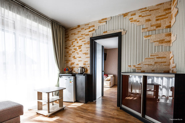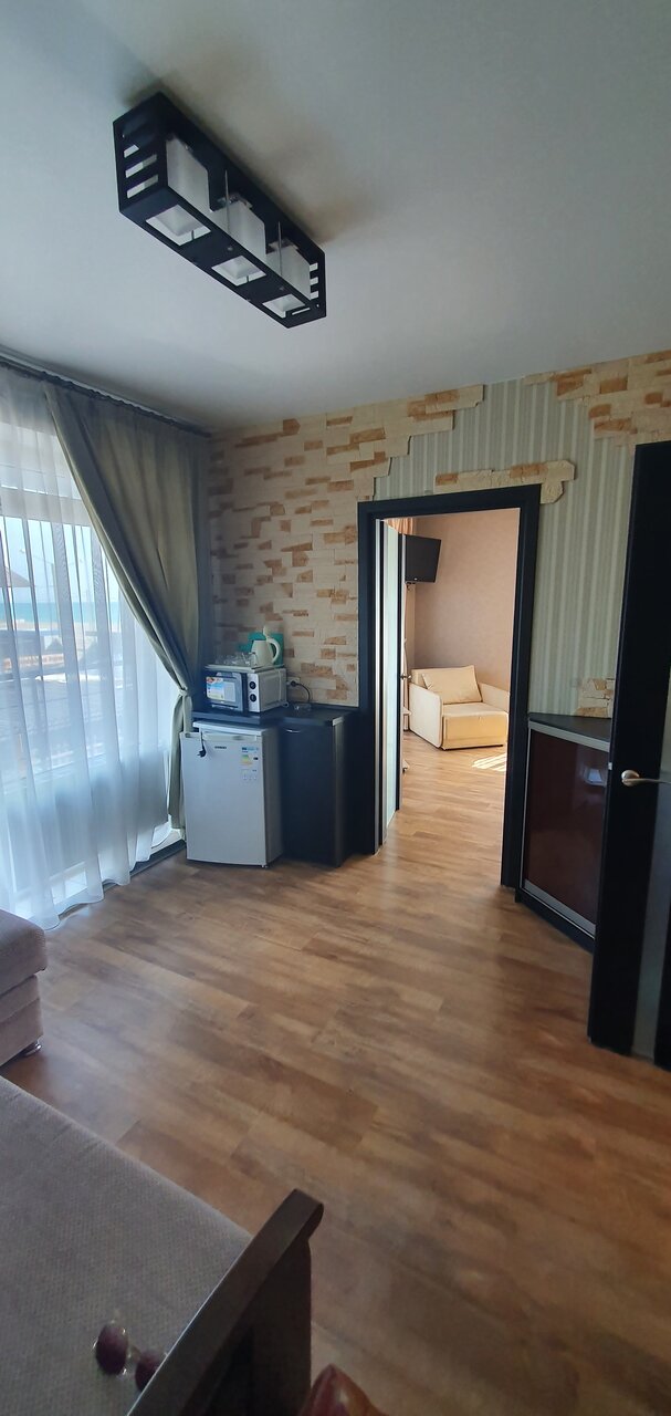 Отличный отель, отдыхали здесь с 28 по 31 августа 2022 года в номере люкс. Всё очень понравилось, чистый, современный, просторный 2х комнатный номер с потрясающим видом на море, рядом набережная с кафе и магазином. Во дворе отеля есть летняя кухня и большой стол где можно вечерком посидеть пообщаться с гостями и хозяивами отеля. Очень понравился песочный и просторный пляж с чистой водой. Отдельное спасибо хозяевам отеля Ольге и Юрию, очень приветливые, добрые и позитивные люди))