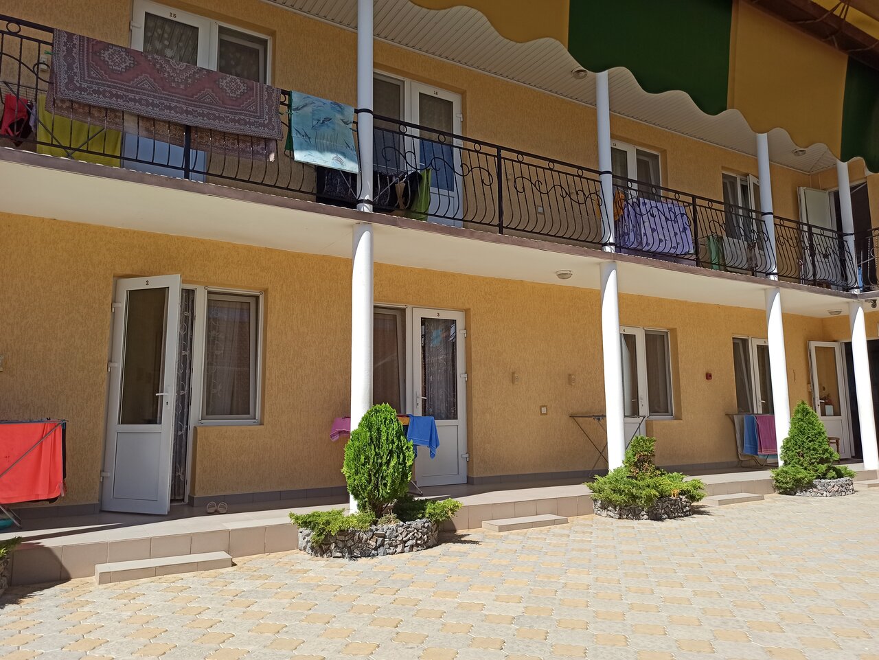 Хороший отель, всё необходимое есть в номере. Большая общая кухня, есть общий мангал (за отдельную плату 200). Приятные владельцы, которые живут тут же и готовы ответить на все вопросы и если нужно подсказать что-то. Подходит больше для семейных с детьми (их тут много), после 11 вечера все ложатся спать, ну или тихо сидят во дворе. Стиральная машина платная 300 за один заход.