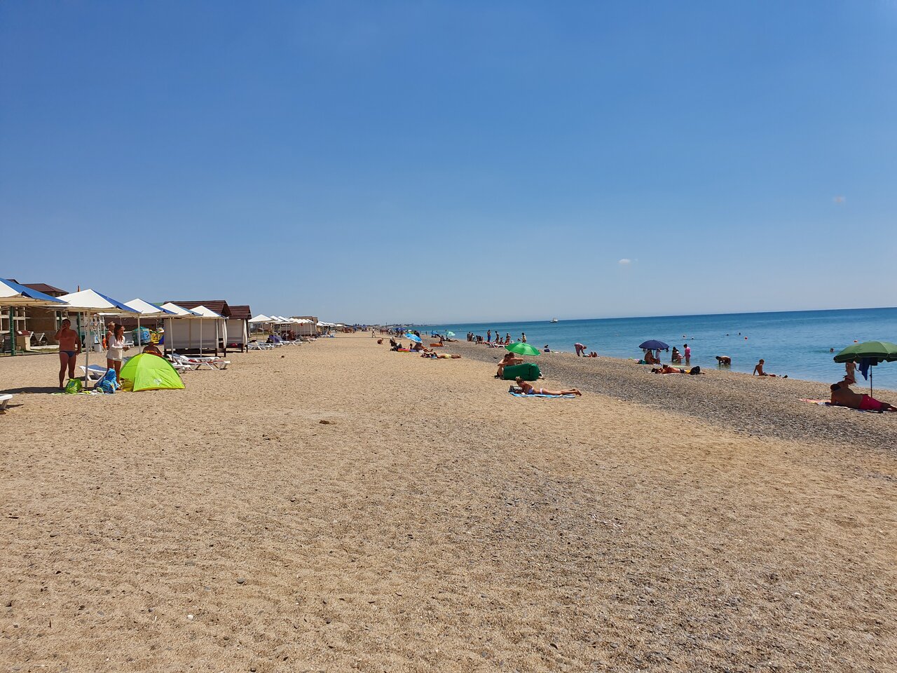 Все понравилось. Вкусная домашняя еда. Завтрак и особенно обед понравился. Соте, пельмени, тефтели . У ребёнка отдельная кровать. Именно кровать полноценная, а не доп место, которое обычно раскладывают по необходимости из кресла. Белое постельное белье и полотенца. Искала хороший номер с ремонтом без ‘бабулиных’ простыней. Из 3х вариантов в данной локации остановились на Золотом. Пляж метров 50 пройти, местность ровная, поэтому сюда удобно ехать на отдых людям с ограниченными возможностями. На небольшой набережной есть фаст фуд. И здесь культ шашлыка. 3-4 точки где его жарят из разных видом мяса, рыбы, очередь стоит вечером везде за ними. Приехали ради аквапарка. Но в итоге заленились, и не пошли. Сделали себе тюленеподобный отдых.