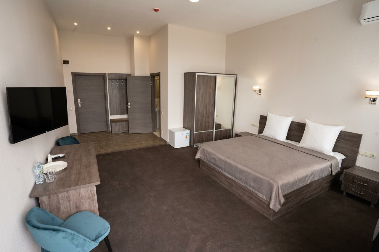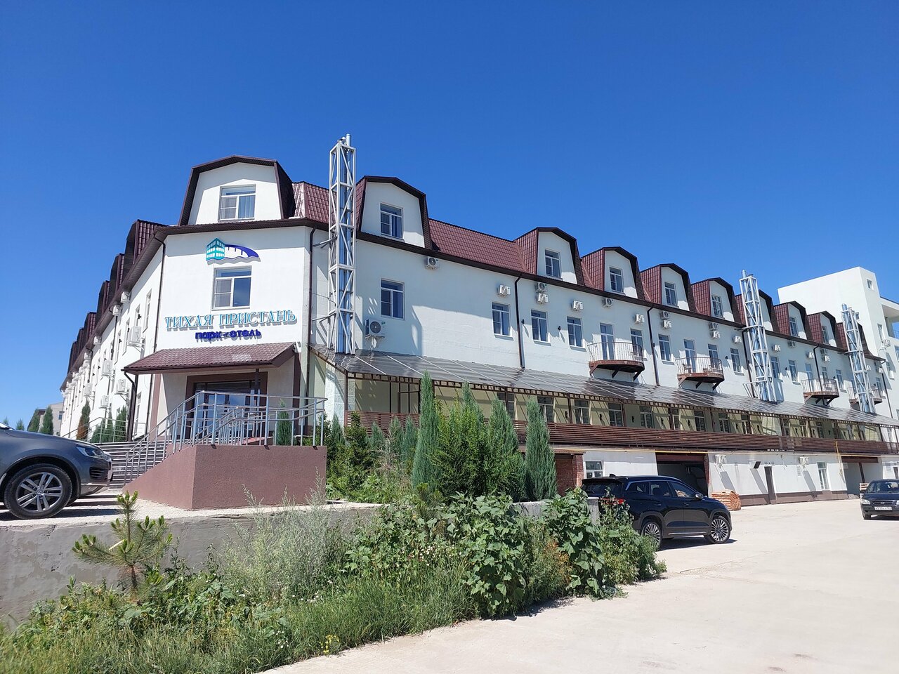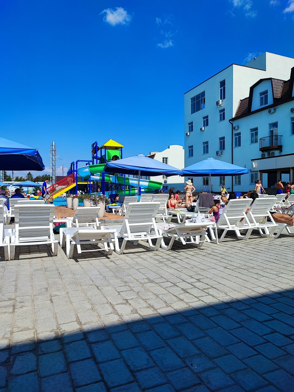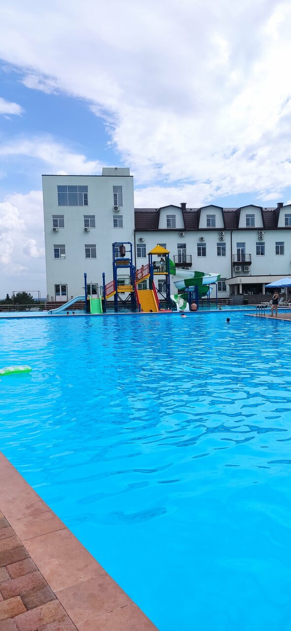 Хорошая гостиница , номера тоже , есть парковка , помещается внедорожник с прицепом , в сезон там наверно очень круто , бассейн горки водные .