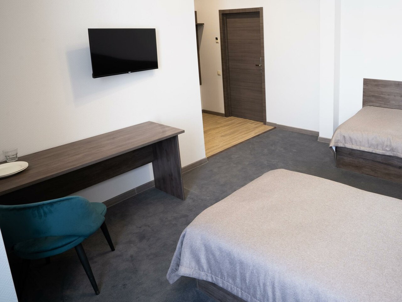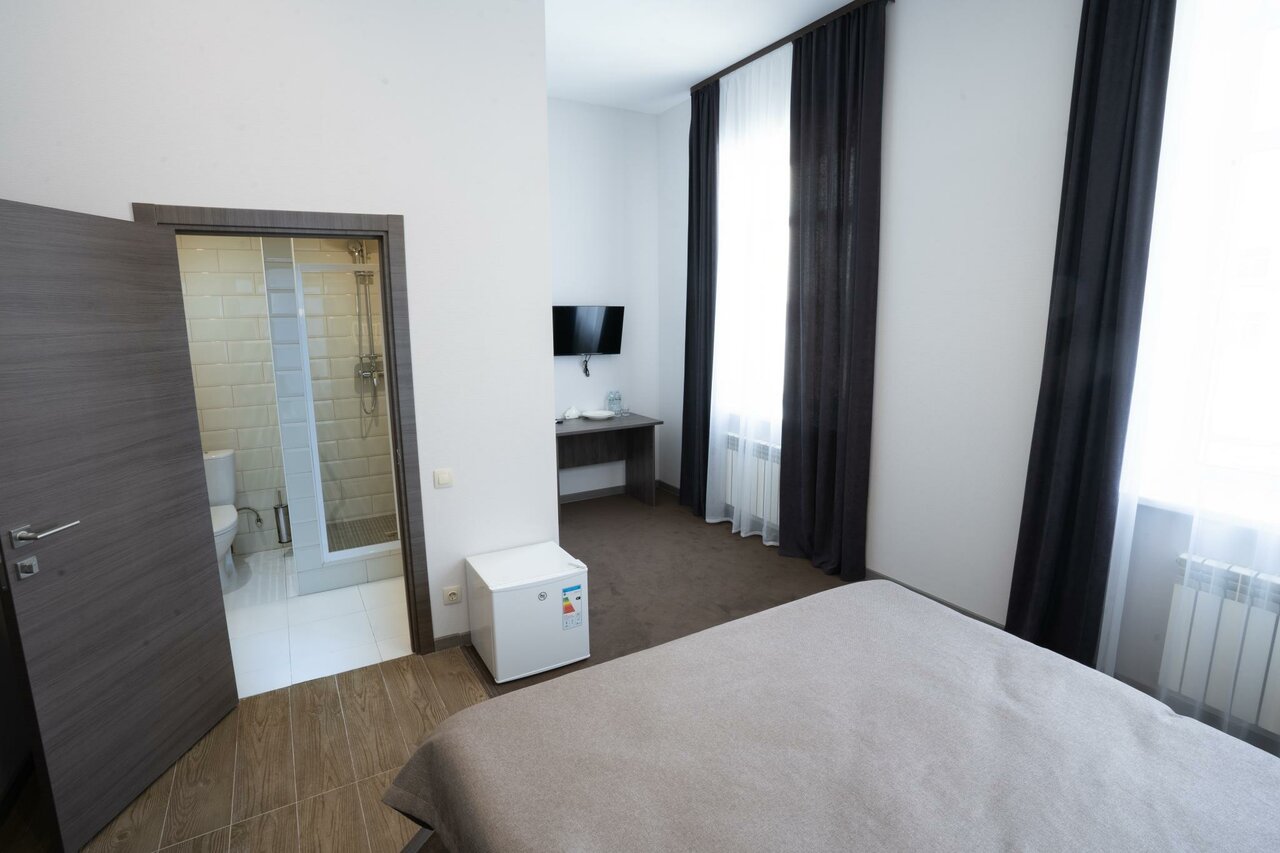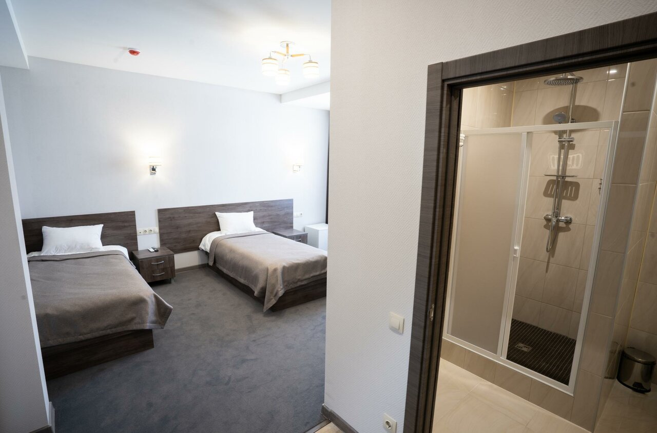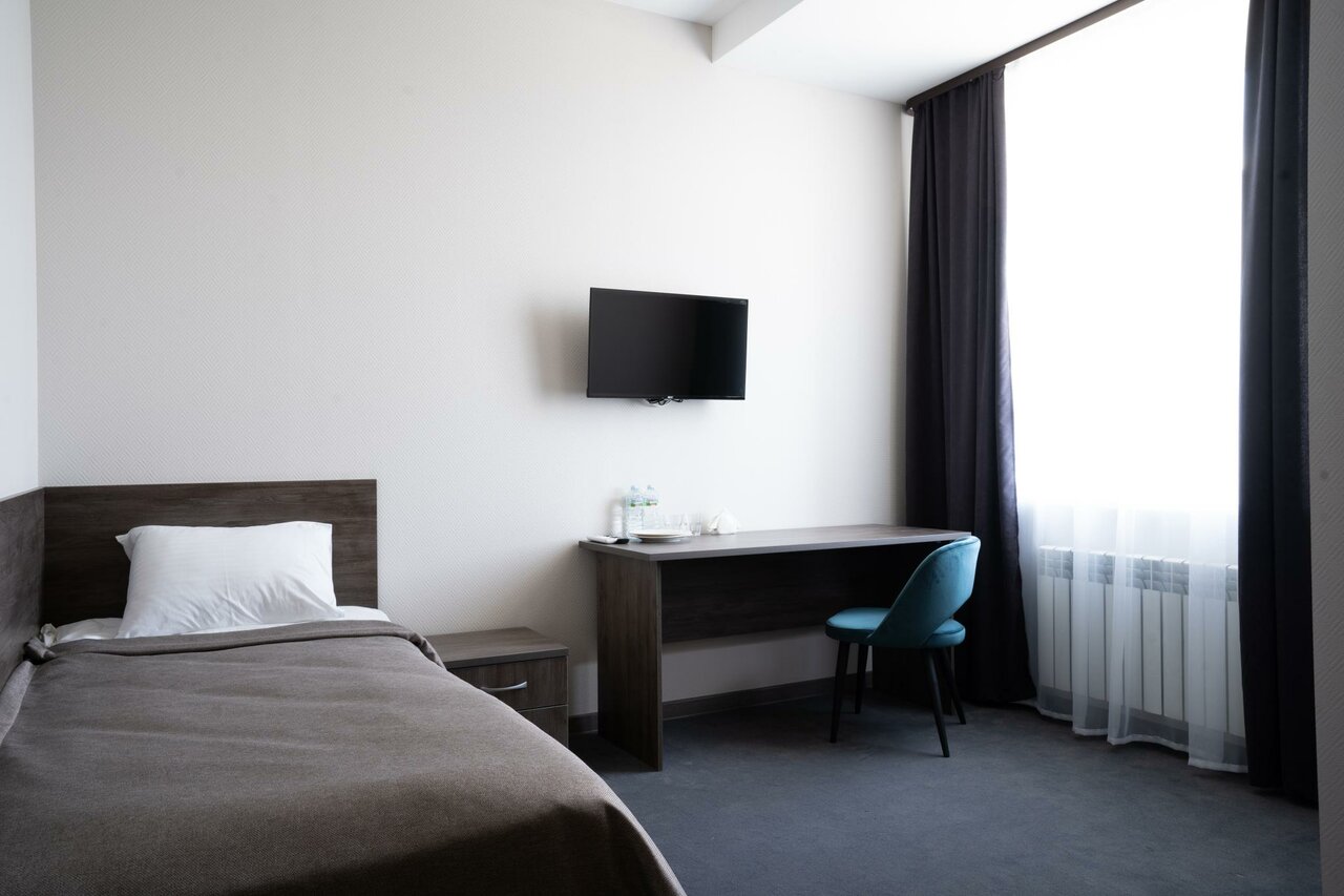 Хорошая гостиница , номера тоже , есть парковка , помещается внедорожник с прицепом , в сезон там наверно очень круто , бассейн горки водные .