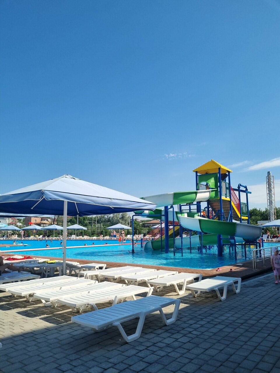 Очень понравился бассейны и горки , вкусная не дорогая кухня. Есть лежаки и зонтики . Туалет чистый, есть переодевалки.