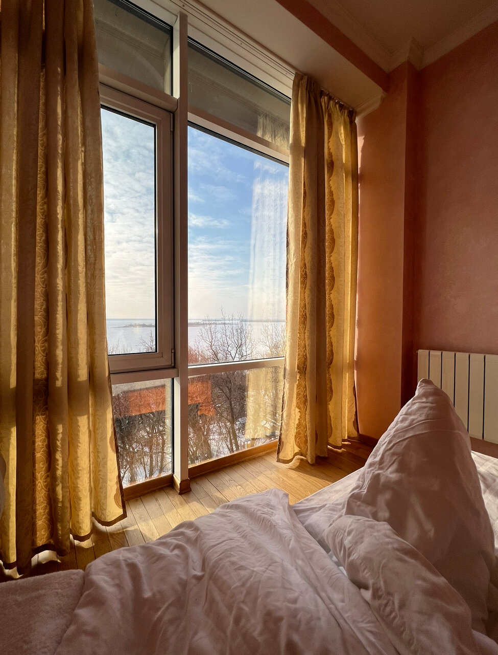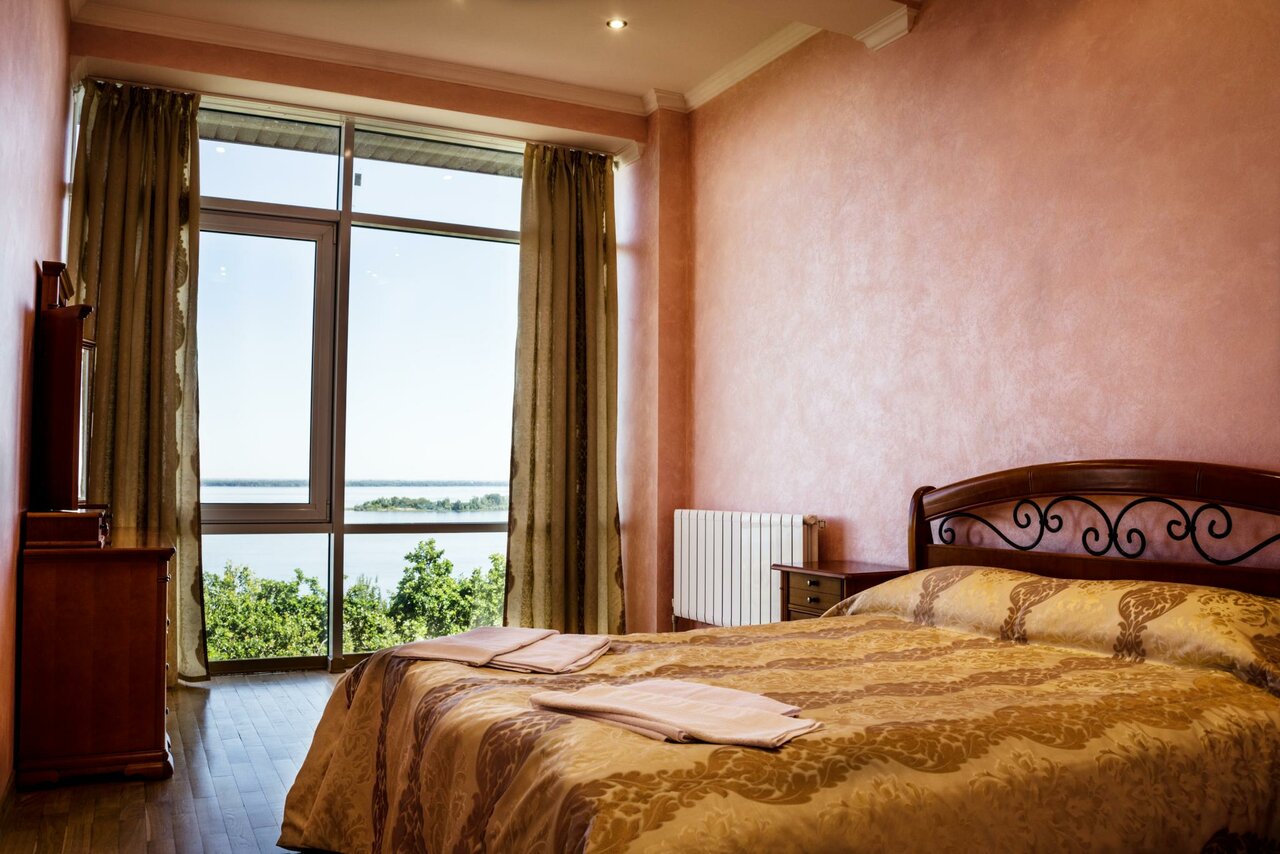 Был один раз. Обещали полулюкс, но там не было из обещанного в рекламе: кондиционер, халаты, рабочего тв ( хотя обычно его и не смотрит никто). В итоге извинились и дали люкс, где всё исправили. Спасает отель еда, тут всё замечательно, вкусно плюс ещё и вино иногда подают. Обещанные панорамные окна с видом на Волгу есть но их не так много, уточняйте обязательно у администратора. Рядом нет магазинов поэтому если надо алкоголь затаривайтесь заранее в городе, у админа есть только пиво в продаже баночное