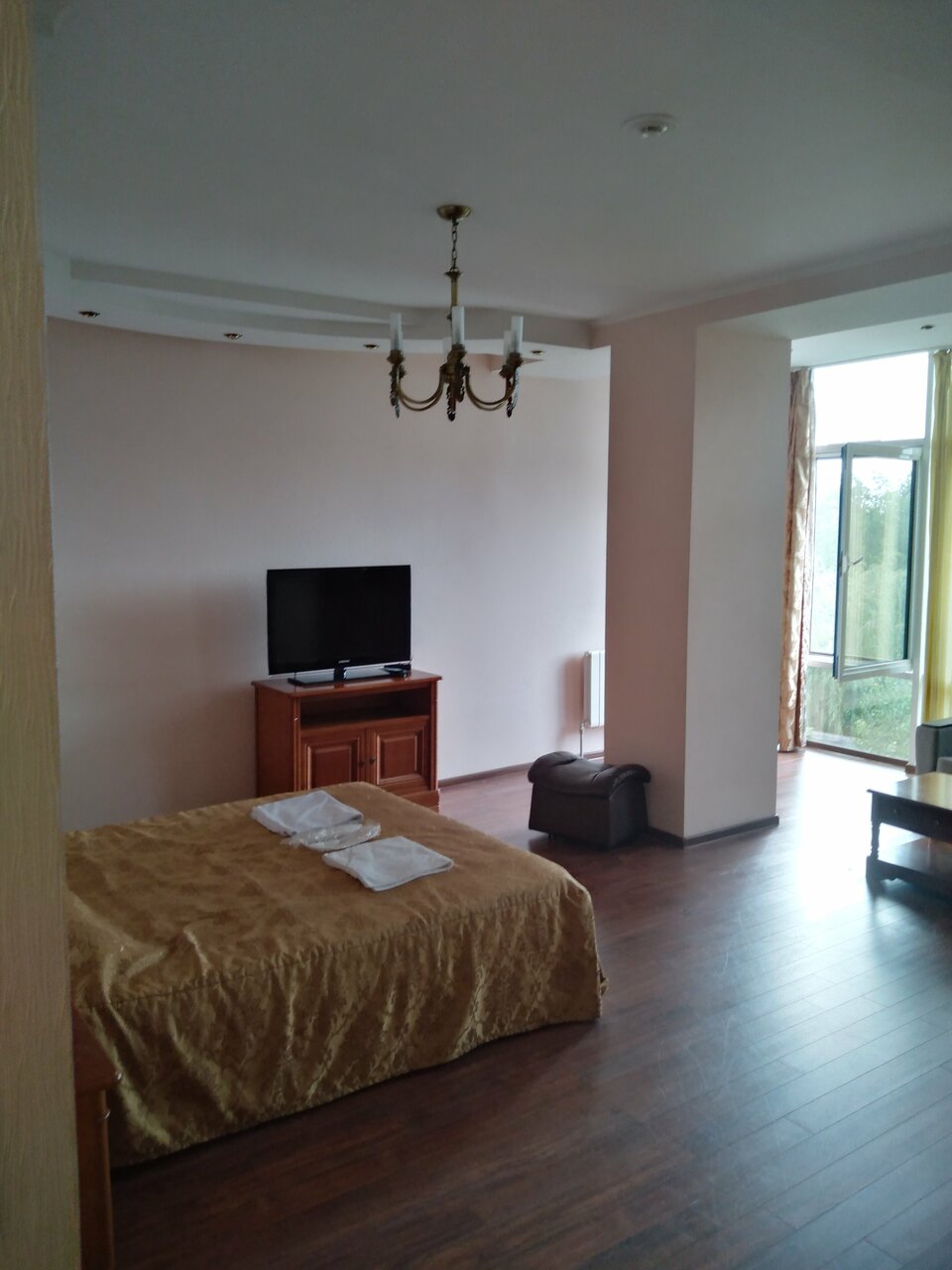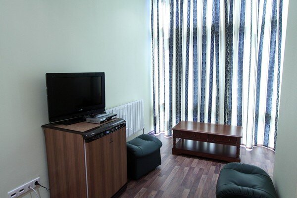 Номер небольшой, но жить можно. Все необходимые удобства есть. Персонал доброжелательный. Мы брали с завтраком, вполне сносная еда. Тихо, спокойно, чистенько. Из минусов дороговато и дорога убитая