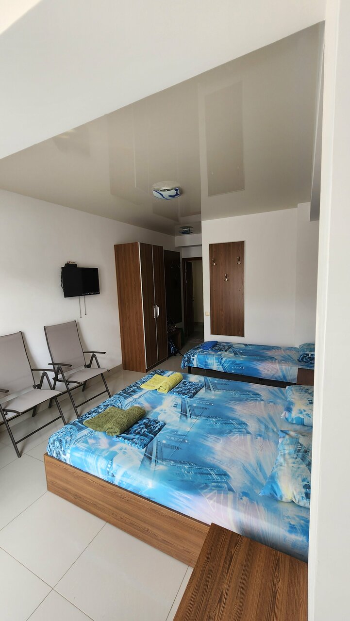 Номер -средне, уборка в номере: 1 раз в 3-4 дня. Мусор выносили сами. Полотенца за все 6 дней не меняли. В номере электрочайник. Wi-fi ловит отвратительно, телевизор показывает 2-3 канала из 18. Питание для семьи с детьми: просто некудышное. Кто привык к домашней кухне: готовьте кошелёк, а именно наличку! Банкоматов, магазинов-супермаркетов Нет! Ларьки: в которых можно купить продукты, но сам не приготовишь. Кухня отсутствует!!! Успокаивало только то, что: спустился в любое время дня и ночи и ты на берегу моря! Море-СУПЕР! А всё остальное: Ищите другие места для отдыха!