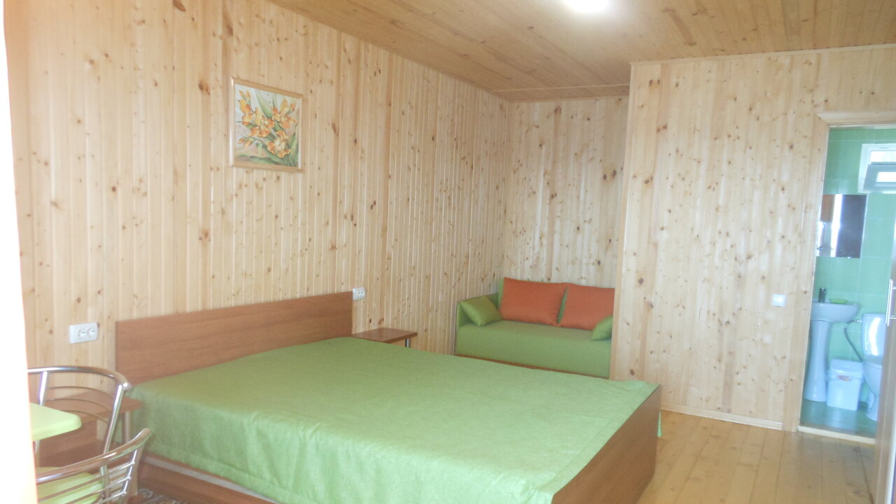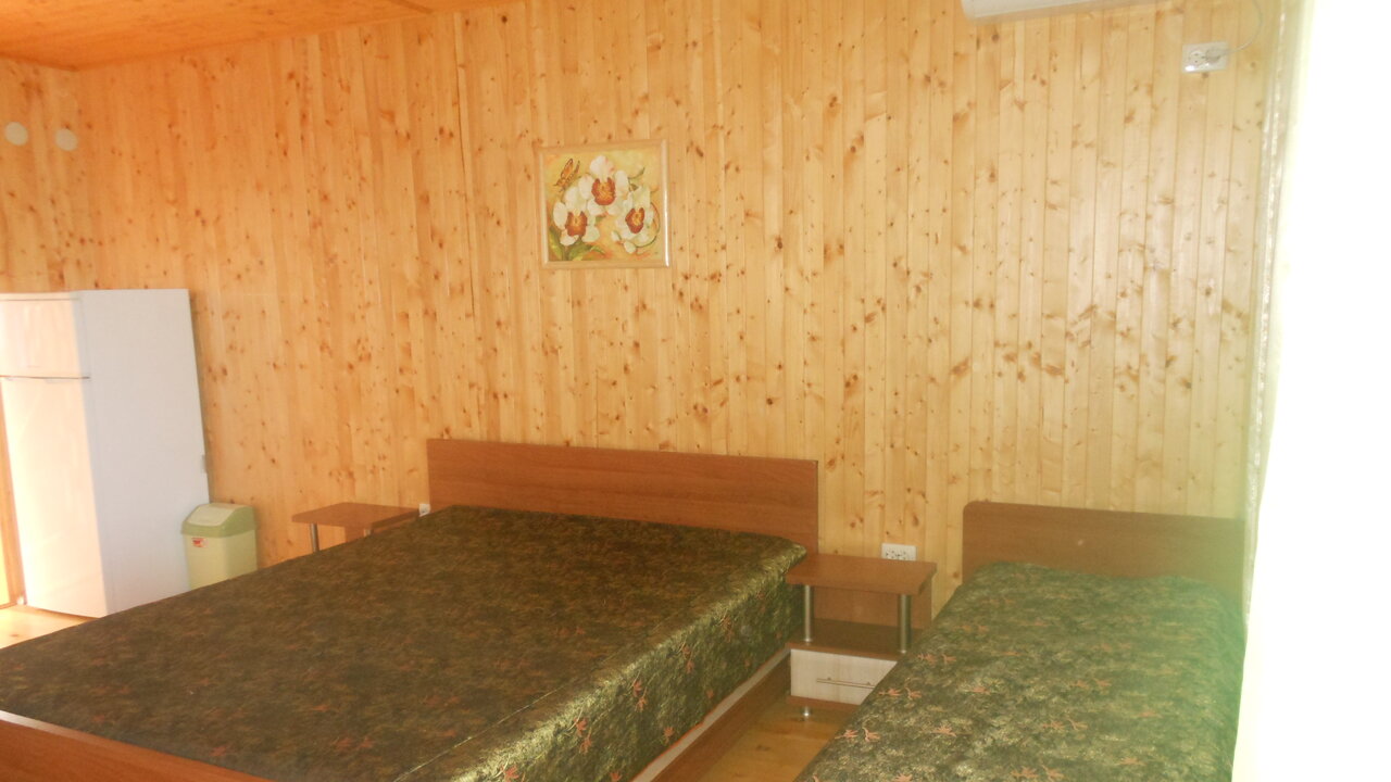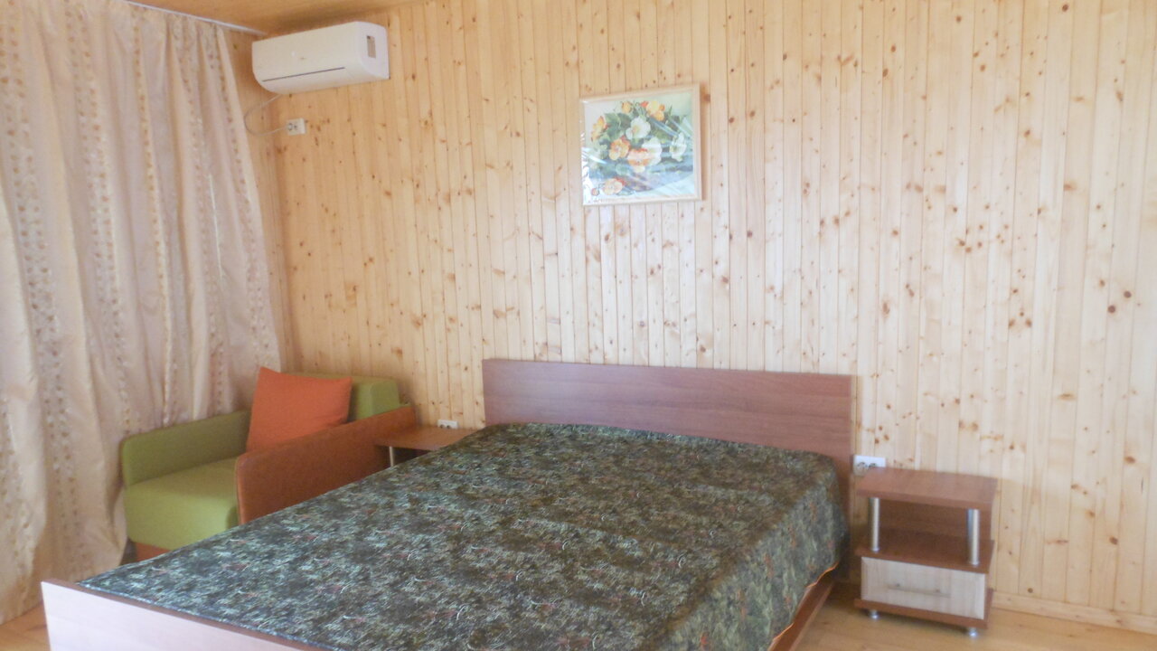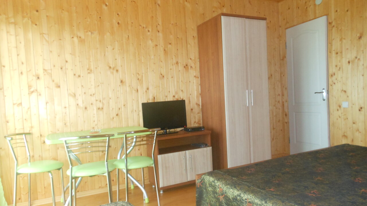 Отдыхали здесь 2 года подряд и опять собираемся. Тихое место для тех, кто хочет отдохнуть от городской суеты. Стандартные гостиничные номера — кровать, с/у с душем, кондиционер, телевизор. Отдельный вход в каждый номер. Питание заказывали: вкусная домашняя еда — выходило не дорого. Но можно готовить и самому. До моря 3 мин пешком. Пляж чистый без инфраструктуры. Море чистое. И много, много дельфинов. Рыбалка в море незабываема. Впечатлений море)). Рекомендуем.