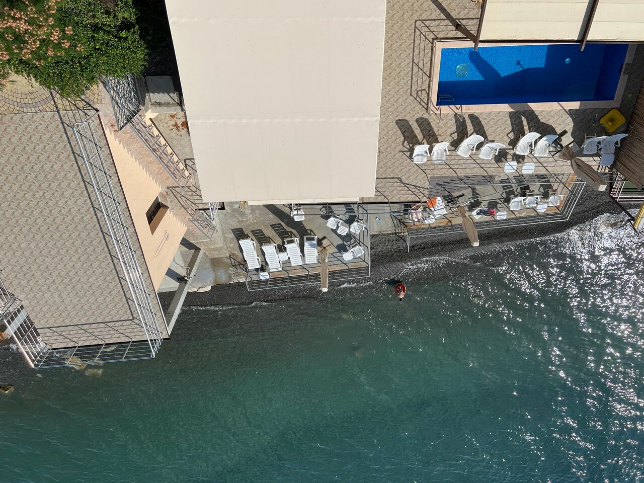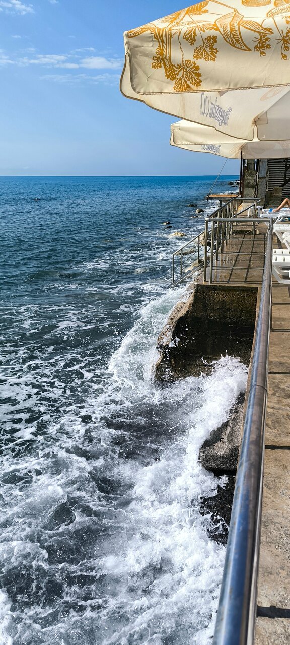 - Нет классического пляжа (шезлонги на бетонированных площадках).