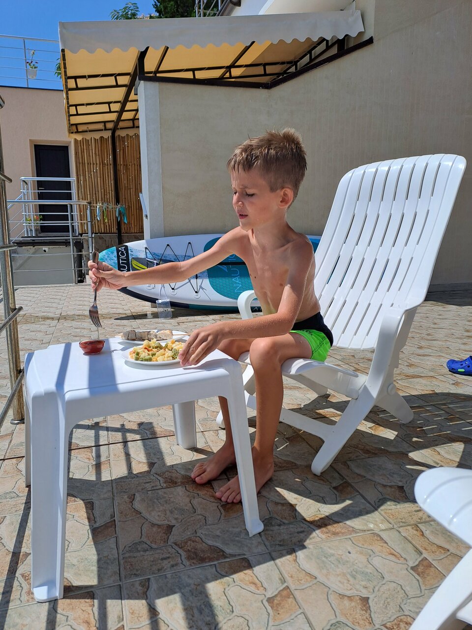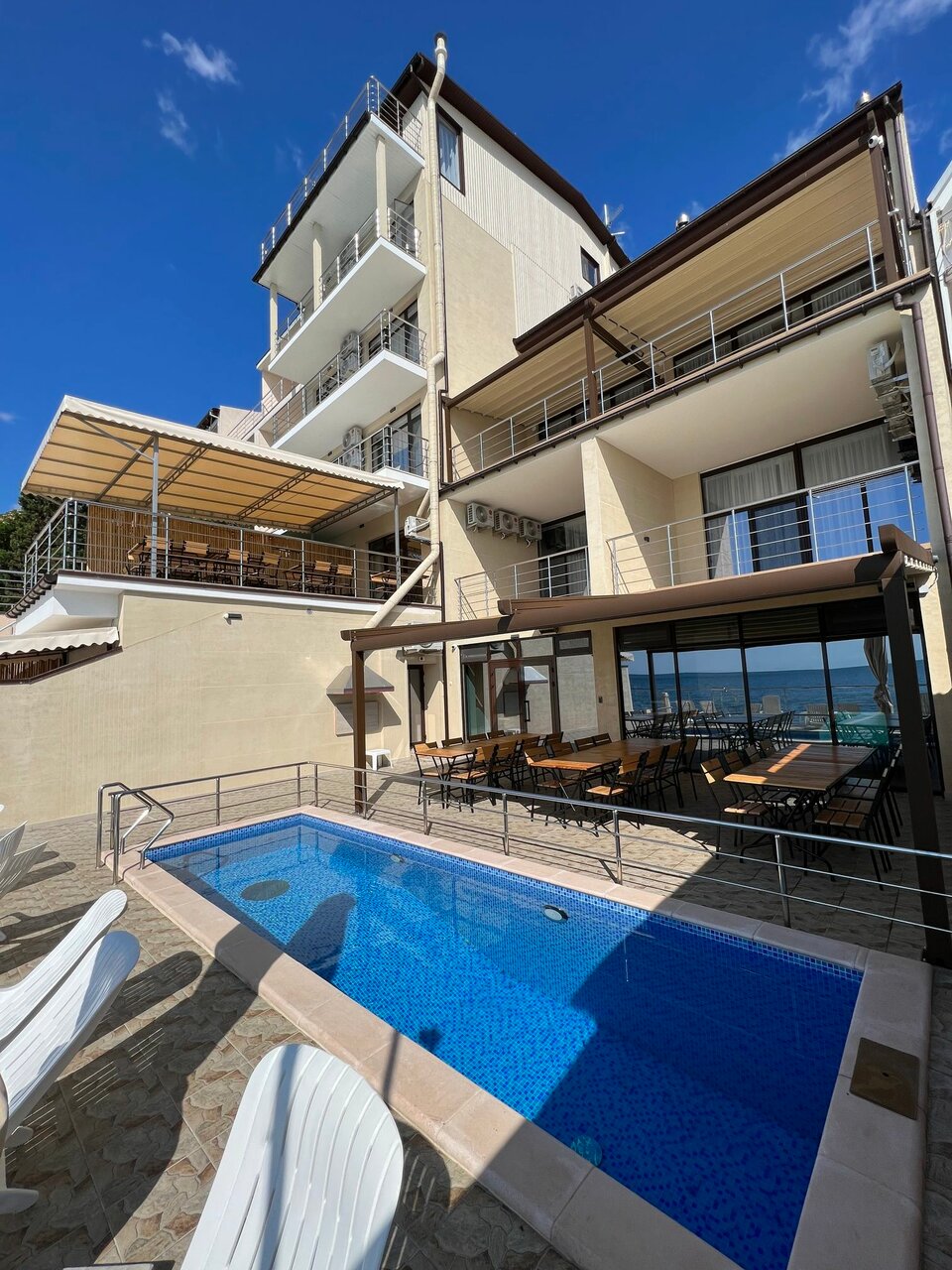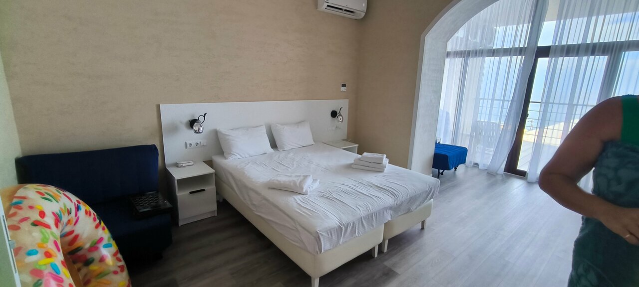 Всем доброго дня. Отдыхали в этом отеле в августе. Что хочется сказать! Однозначно это лучшее место на данном побережье! Что хочется отметить: отличные номера, причём не такие себе тяп ляп, а прям хорошие: дорогая сантехника,двери, хорошая мебель, постель и тд, видно что человек не экономил на строительстве, а делал все для людей. Отличная идея с общей кухней на которой можно самостоятельно готовить, ну и 5 звёзд за терассу на которой можно кушать приготовленную еду! Терраса с видом на море, просто шикарно. Есть бар, достойная еда, доступные цены, быстрая подача! Ещё одно преимущество это бассейн! 3 дня был шторм, но это не омрачило наш отдых тк можно пользоваться бассейном, лежаками и все это с видом на море. В общем очень классное место для спокойного семейного отдыха. Спасибо всем сотрудникам отеля за заботу и комфорт . Алексей вам удачи в развитии бизнеса, мы к вам точно вернёмся!