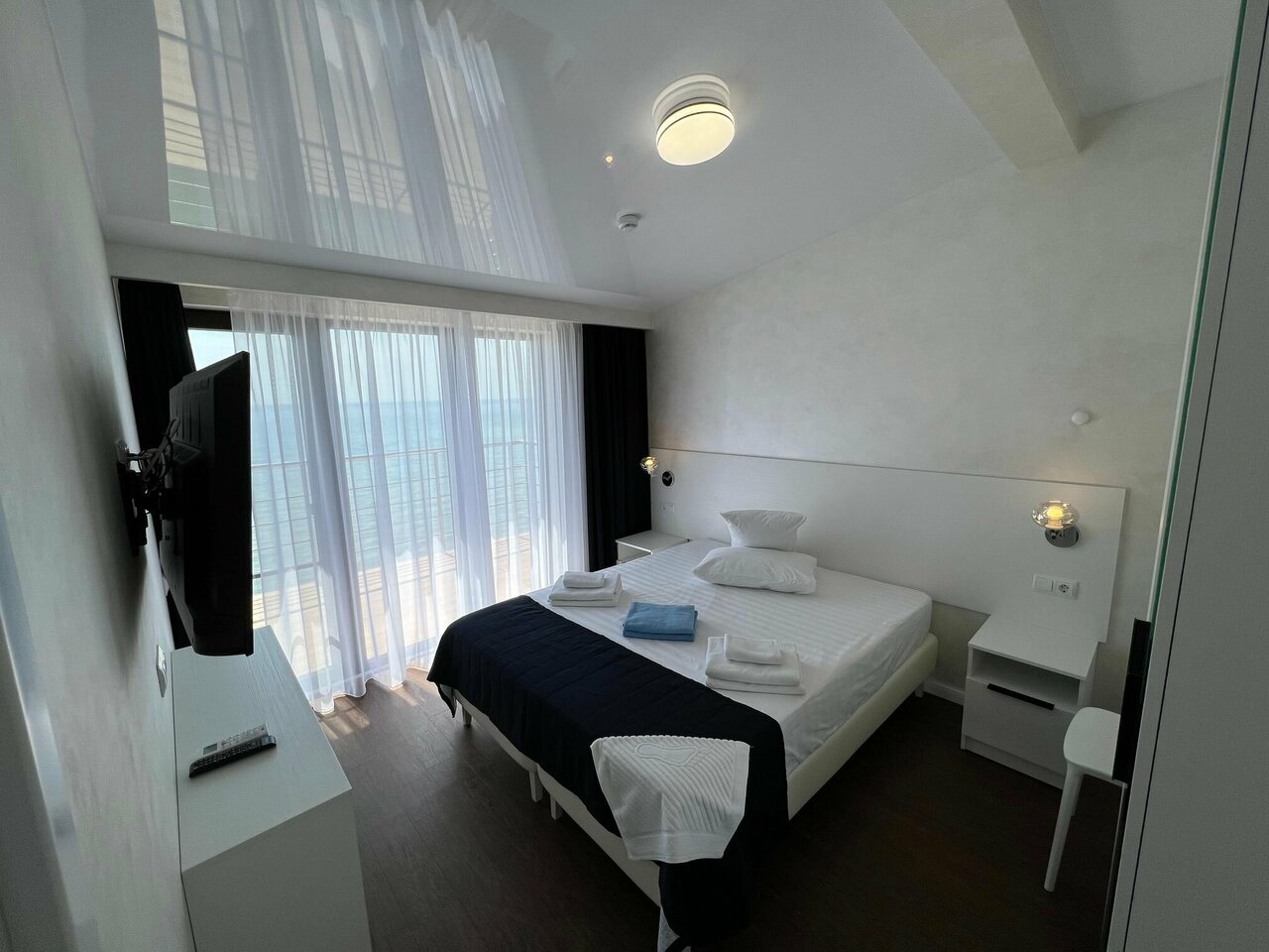 Отличный новый, свежий отель. Собственный выход в море, площадка для загара, бассейн. Номера просторные, вкусное кафе на первом этаже.