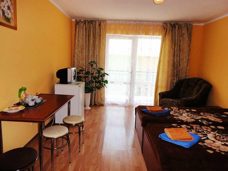 Если вы хотите узнать, как отдыхали в СССР лет 30 назад, то вам надо поехать в,, Гамачоку моря’. Номер отвратительный. Мебель и бытовая техника древняя. Одно название холодильника’Днепр’, уже говорит о многом . Телевизор по возрасту от холодильника далеко не ушёл, линолеум рваный. При заселении полы были грязные, их никто и не собирался мыть. Постельное белье и полотенца не простираны, запах затхлости. На счет питания, кто лежал в больнице поймет, сбалансированное больничное питание. Для примера, завтрак:5ложек каши , кусочек сыра, кусочек масла, 2 куска хлеба, чай. Один плюс, не обманули, море в двух шагах. Только это и скрасило отдых в гамакчке.