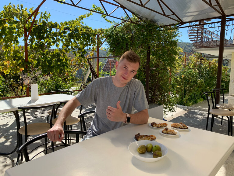Очень приличный гостевой дом, все удобства: бойлер, кондиционер, телевизор, холодильник. Отдельная летняя кухня с поваром. Жене и ребёнку очень понравилось. До моря 4 мин по небольшому склону или 7 мин в объезд через село. Особенно хорошо что нет гама от дороги и пляжа — тишина и природа