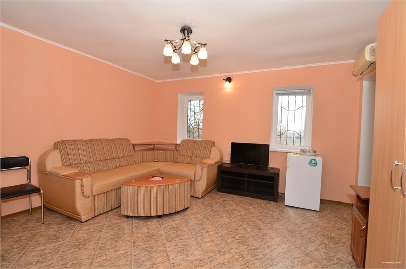 Чудесное место! Домик с синей крышей. Красивые номера, везде евроремонт. Очень добрая и отзывчивая хозяйка. В каждом из номеров есть небольшая кухня, холодильник, ванна, туалет, телевизор, кондиционер, на первлм этаже балкончик с видом на море. Номер рассчитан на семью из 4-х человек. Все очень удобно сделано для проживающих. Внутренний двор весь в красивой зелени и цветах. Есть столы, можно посидеть вечером на природе. До моря три минуты ходьбы. Пляж без инфраструктуры, на пляже отдыхают только те, кто приехал с палатками. Пляж галечный, крупные и мелкие камушки. Все основные магазины находятся в поселке Приветное, на машине 7 минут езды, пешком полчаса. Практически во всех магазинах принимают карты. В сезон в гостевом домике все занято, лучше приезжать в июне, сентябре, когда погода позволяет прекрасно отдохнуть и нет жары. Тем, кому хочется тишины и очень спокойного отдыха, лучшего места не найти!