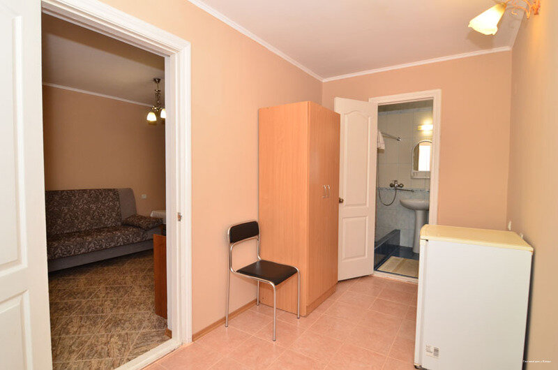 Хорошие номера со всеми удобствами. В номере есть кондиционер, плита, холодильник, микроволновка, телевизор, инет, унитаз и душевая кабина. До моря 4 минуты пешком.