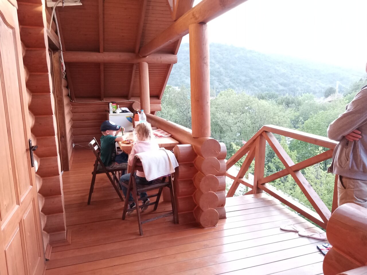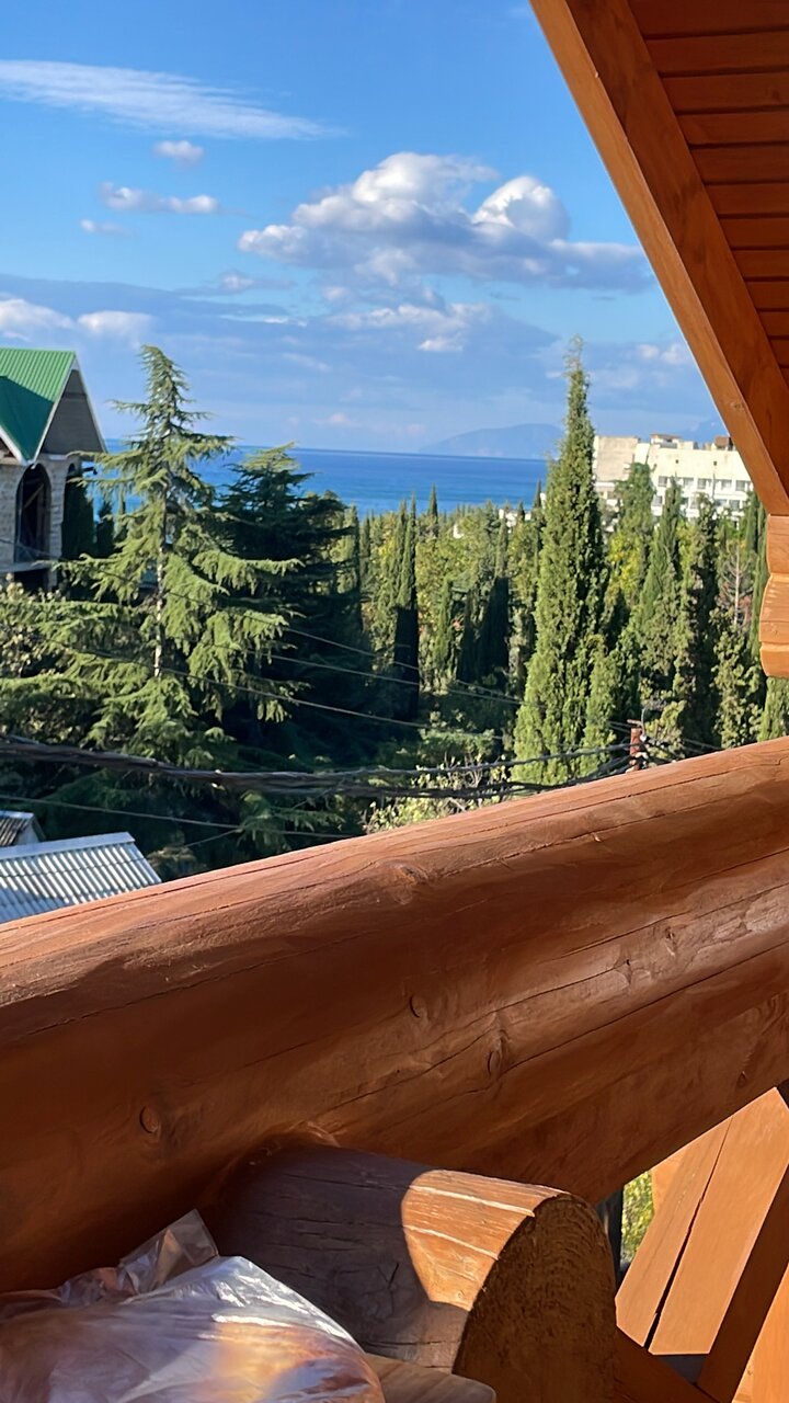 - Природа вокруг (кипарисы, можжевельник).; Деревянный сруб (экологично, уютно, красиво).; Хороший Wi-Fi.; Общая кухня с необходимым оборудованием.; Чистота и ухоженность территории.