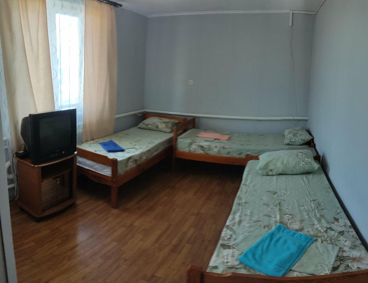 Гости видимо здесь бывают не часто…))) Приехали мы после звонка минут через 15, номер подготавливали в спешке, было сыро и холодно хотя на улице лето и конец августа…Воняло канализацией, но это опять же от того что никто не проветривал и номером никто не пользуется, банально высохли гидрозатворы….Кровати для людей 1.70, не выше, имейте ввиду,мне с моим 1.87 было ну никак. И скрипят .В принципе на одну ночь сойдёт,и главный плюс это 2800 руб, остальные гостишки берут подороже. В остальных отзывах писали про отсутствие воды, у нас такого не было, хотя сантехника умерла уже давно))) Как итог. Номер норм, довести чуток до ума и было бы дело..