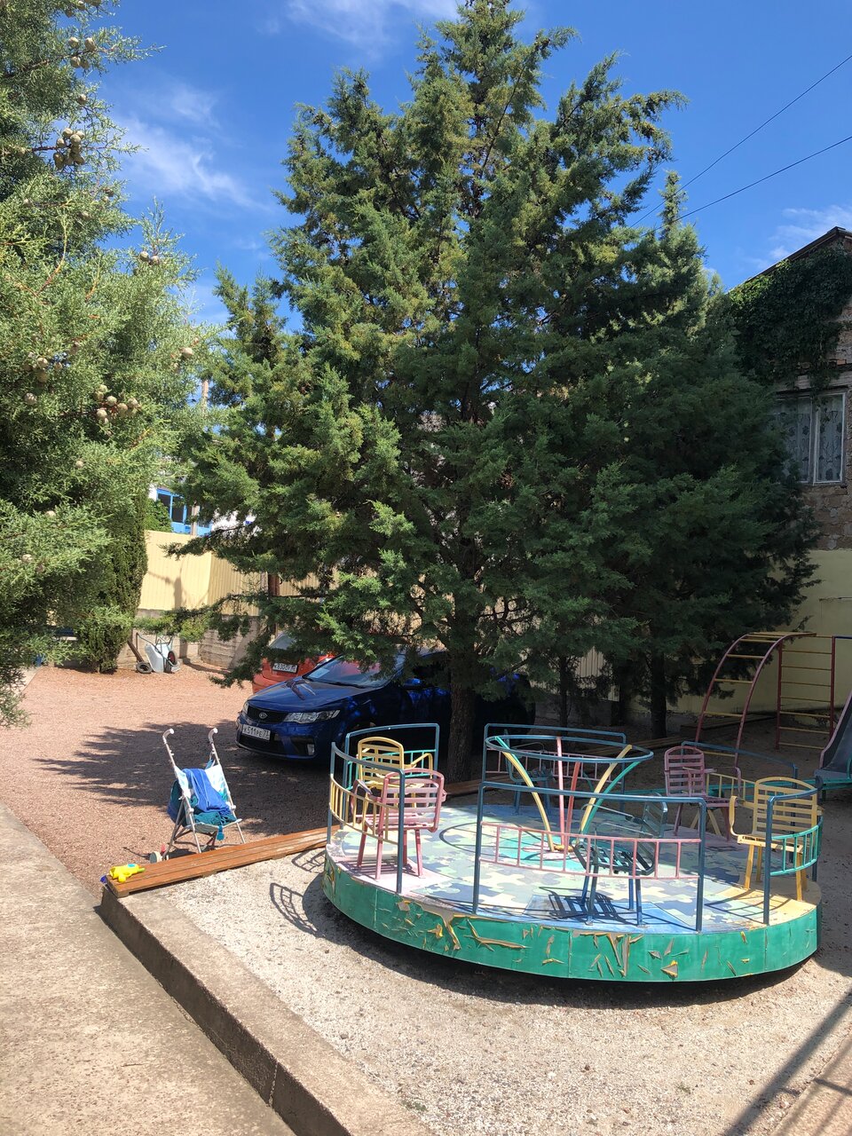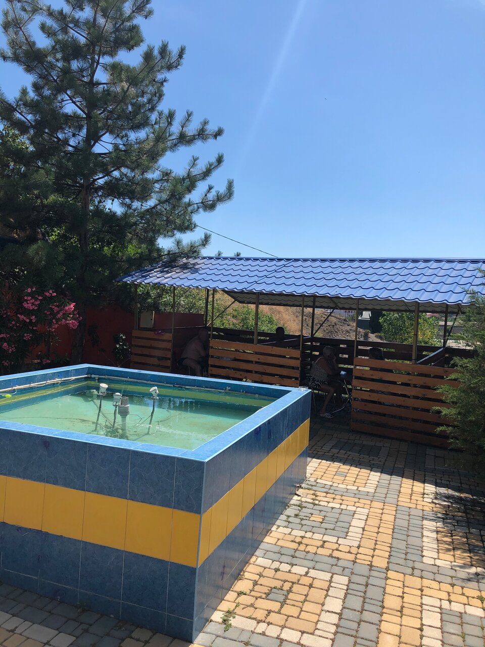 Отдыхали в августе 2024. Хорошая территория, бассейн, беседки, н номера, есть мангал, кухня с посудой и микроволновкой и чаем для гостей отеля, можно питание заказать. До моря 5 мин, большие пляжи с мелкой галькой, кафе и магазины , вс в шаговой доступности. Никаких опасностей на территории послка и в небе над посёлком,тишина полнейшая.небольшой детский городок. Очень понравилось, вернемся обязательно еще, спасибо огромное приветливым хозяевам за гостеприимство!