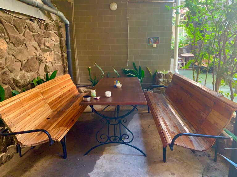 В номере, в котором мы жили кран с горячей водой прокручивался, а с холодной закрывался так туго, что мокрой рукой затянуть невозможно, не говоря уже о ребенке. Крышка унитаза сломана. При закрывании шторы — карниз упал. Штора не закрывает окно полностью. Холодильник в номере старый — громко гудит и не отключается никогда. Два матраса не подходят к кроватям и края задираются вверх — нет ровной поверхности. Может нам так ‘повезло’ и в других номерах нормально? А во дворе красиво — все зелёное, в тени не жарко.