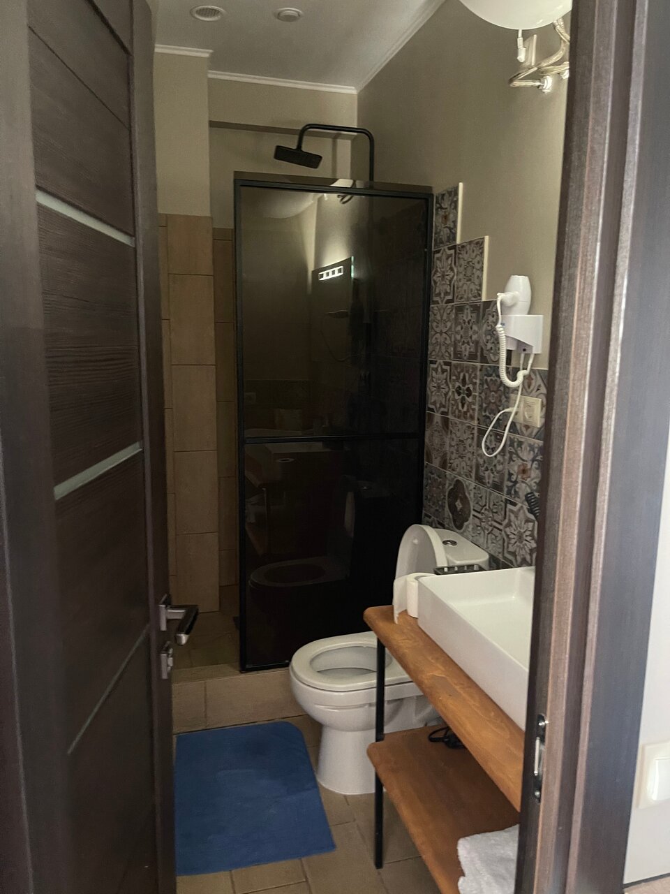 Cream k17 минус две звезды сразу за грязный унитаз . Приезжая на один день в номер, за почти 8к такое увидеть не ожидаешь . После просьбы исправить-порядок навели, но не до конца . Чьи-то волосы все равно остались . Из этого следует вывод о том, как здесь относятся к чистоте . Перед выездом администратор еще пыталась что-то нам сказать о не включающемся телевизоре и отсутствие в нем карты. Абсурд . Причем, как будто, целенаправлено . Сам номер новый , комфортный , но грязные ножи, унитаз и паутина на мебели портят впечатление. В номере есть гигиенический набор и гели / шампуни — это хорошо . Не хватает чая и кофе, потому что магазина рядом нет. Странно, что в таком приятном месте происходят такие вот ситуации. В номере есть целая большая папка с правилами для гостей , а вот пароль от wi-fi забыли положить. В общем заявка на комфорт + , а на деле — ..