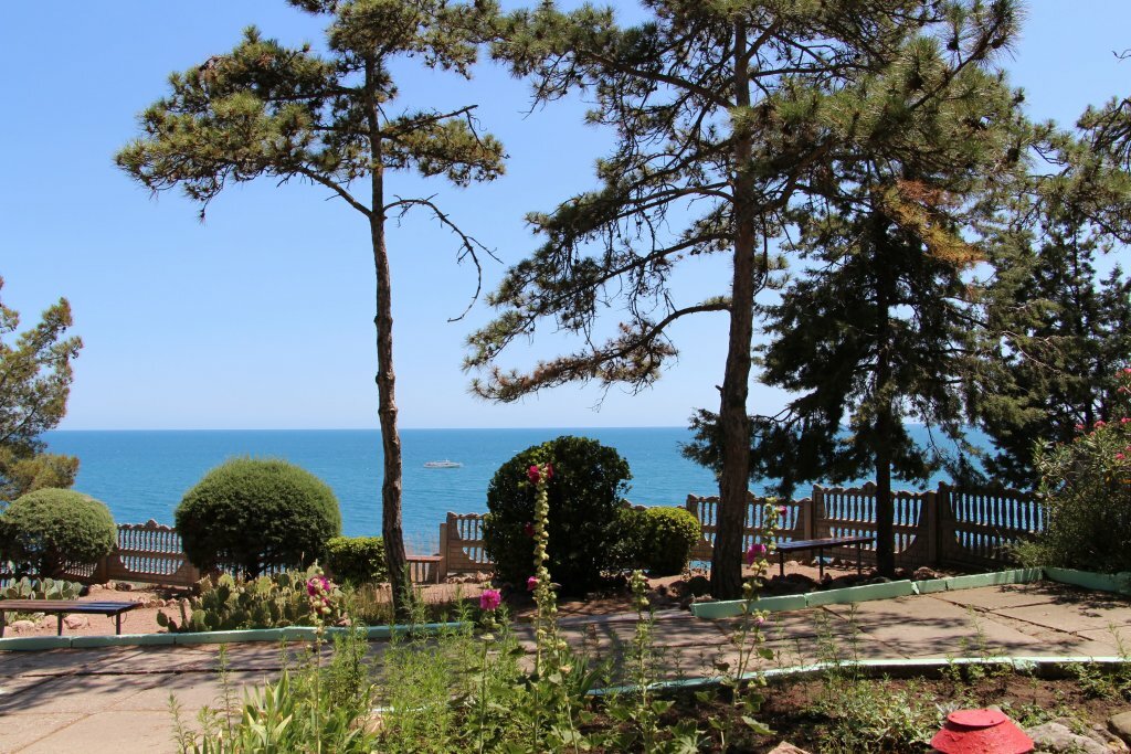 Очень хороший отель, вежливый персонал. Уютный номер со всем необходимым (кроме фена, если он вам важен). Из важного есть: кондиционер, холодильник, телевизор, немного посуды (ложки, вилки, тарелочки, кружки). Очень оценили то, что заселили сразу по приезду в 6 утра. На территории есть хороший, чистый бассейн и шезлонги; своя столовая; утюг и гладильная доска; небольшой спортзал и бильярдный стол; клёвый рыжий котик. Отель располагает собственной небольшой, но уютной территорией с обилием растений. Потрясающий вид с общего балкона или со своего окна. До моря метров 200, но хочу предупредить, что спускаться надо к нему по ступенькам, соответственно когда будете возвращаться придётся подниматься по ним, либо обходить по кругу. Пляж мелкая галька, очень рекомендую с собой брать специальные тапочки для плавания (можно купить в местных магазинах)