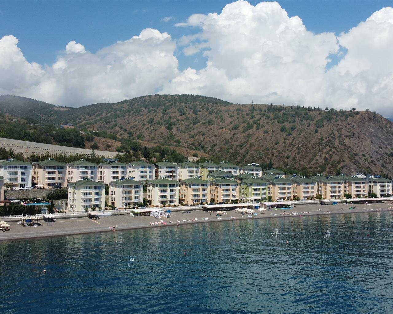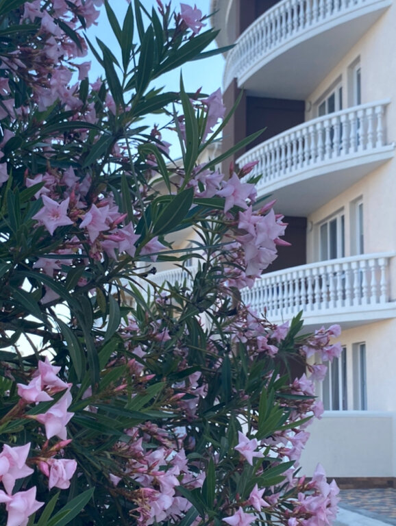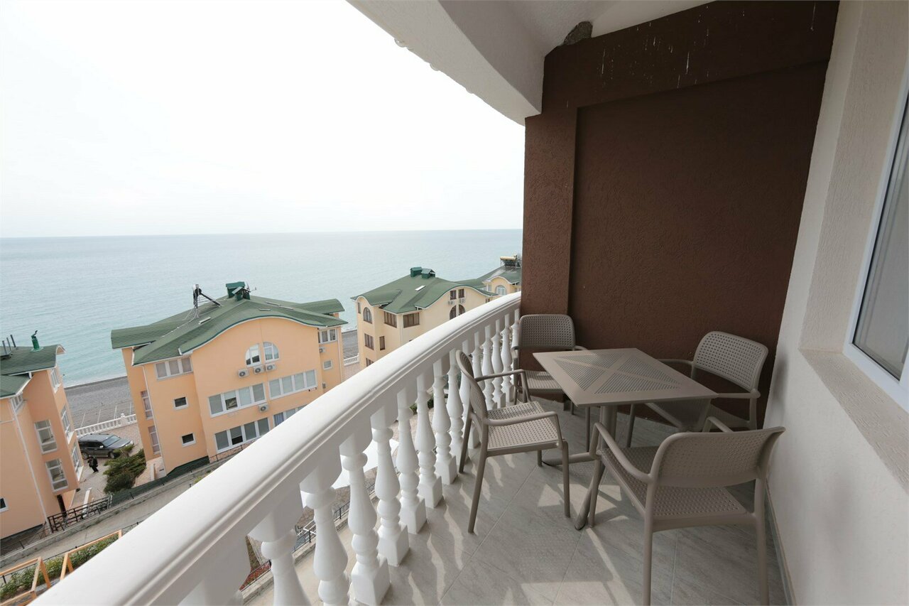 Отдыхали двумя семьями во второй половине июля. Всего 6 человек. Жили на четвёртом этаже. Новый, чистый, красивый номер, оборудованный качественной мебелью и техникой. Большой балкон с видом на море. В основном готовили сами: кухня оснащена всем необходимым вплоть до мелочей. Легкие завтраки доставляют каждое утро в номер. Качественная регулярная уборка. Пляж чистый, лежаки в достатке, территория вокруг ухоженная. До посёлка 3 мин. пешком. Отдыхом остались довольны. Рекомендуем.