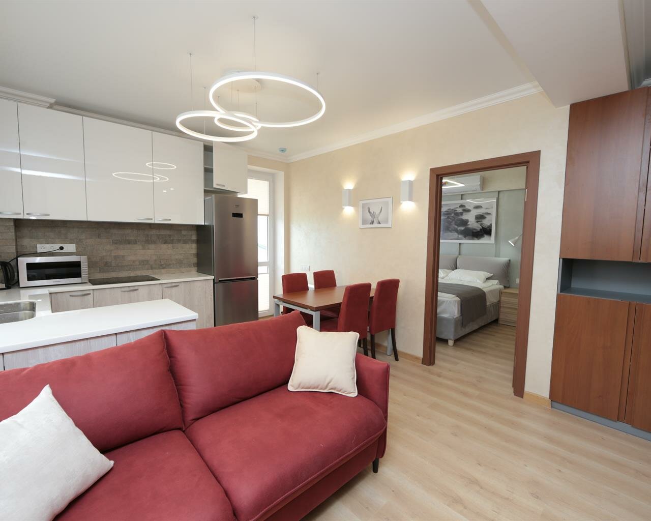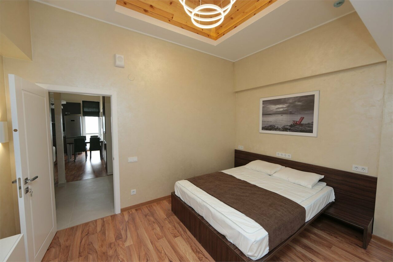Отличные апартаменты, услуги как в Европе, все чисто и комфортно, как дома. Мы любим здесь отдыхать семьей, вдали от скопления людей и минимум контакта, дети аллергики поэтому готовлю ,для этого есть полноценная кухня укомплектована всем и даже мультиварка, соль, перец, масло, КОФЕМаШина. Для удобства кто хочет отдохнуть от готовки доставка вкусной еды из ресторанов себе с мужем заказываем .Редкость где есть две комнаты ,но для нас важно чтобы дети и мы отдыхали каждый в своей , но здесь ещё и кухня гостиная. В каждой комнате большие телевизоры и кондиционеры, на кухне полноценный большой холодильник.Не надо с собой тащить ватные палочки, диски, шампунь гель, порошок ,что меня устраивает так же. Хозяева приветливые и всегда идут на уступки и входят в положение. Уборка безупречная каждые три дня. Оооочень рекомендую!!!