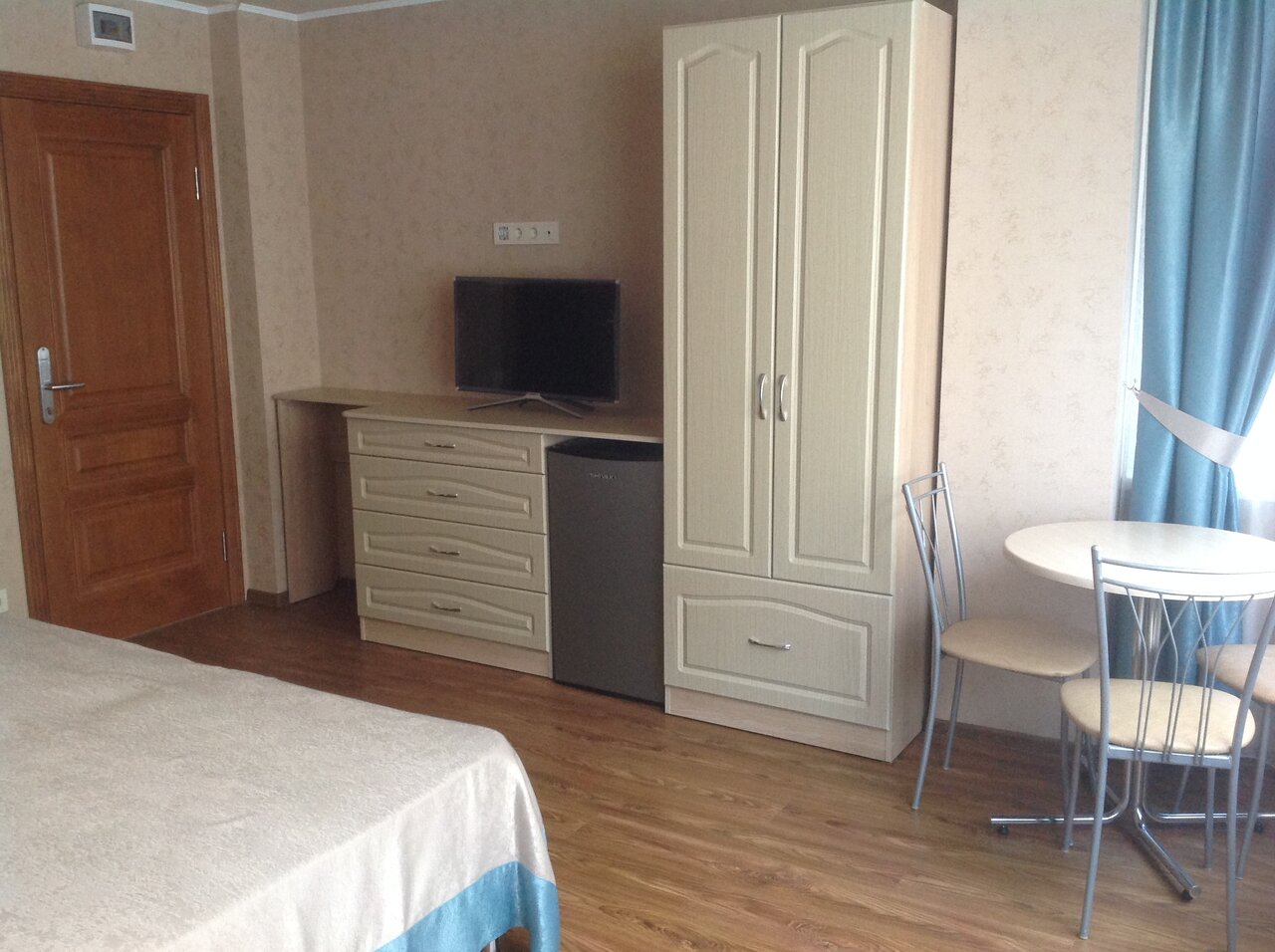 - Кондиционер, телевизор, холодильник, чайник в номерах.