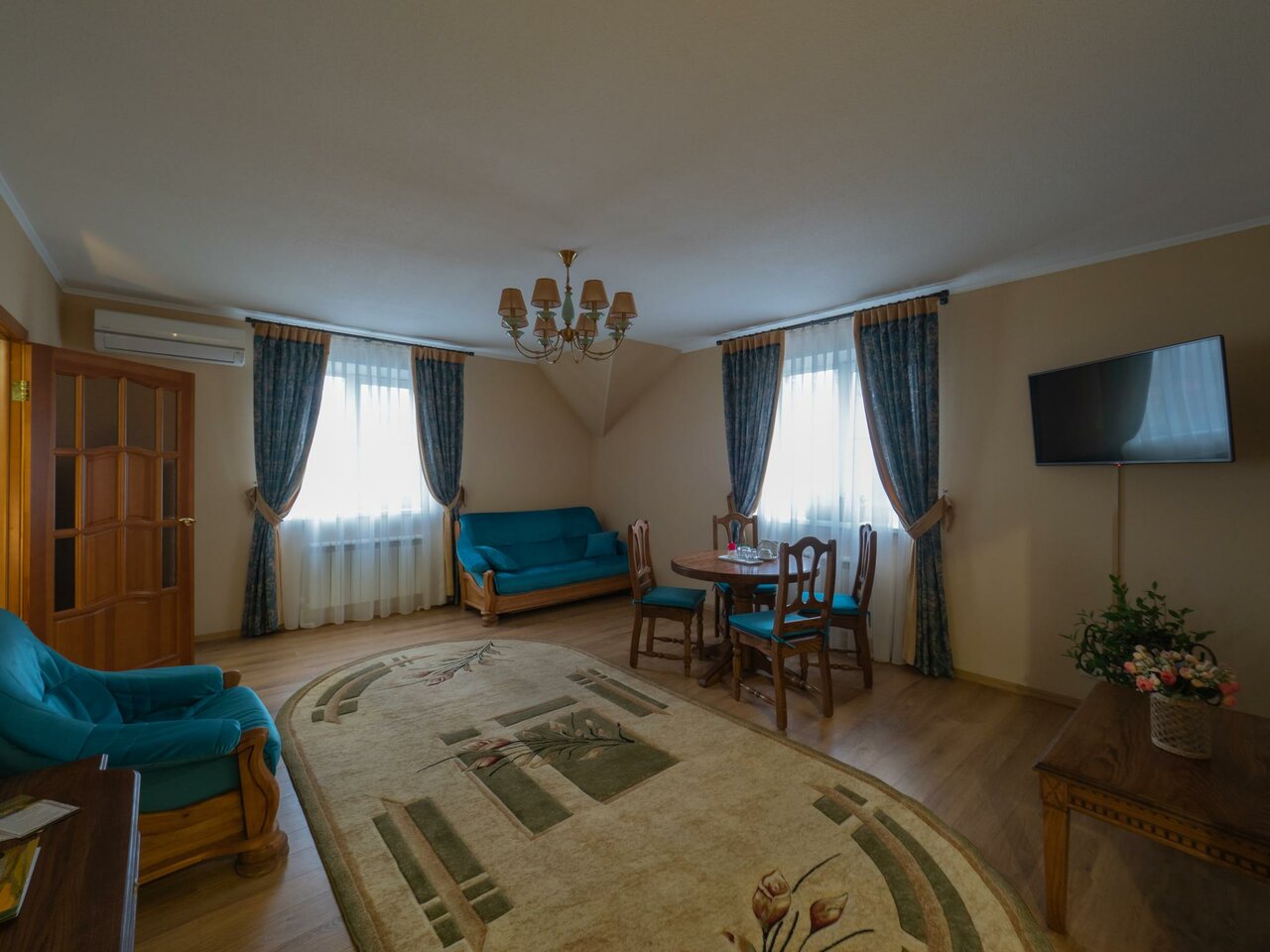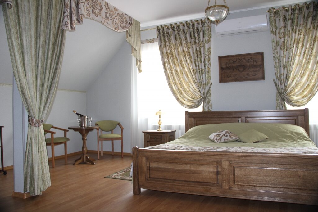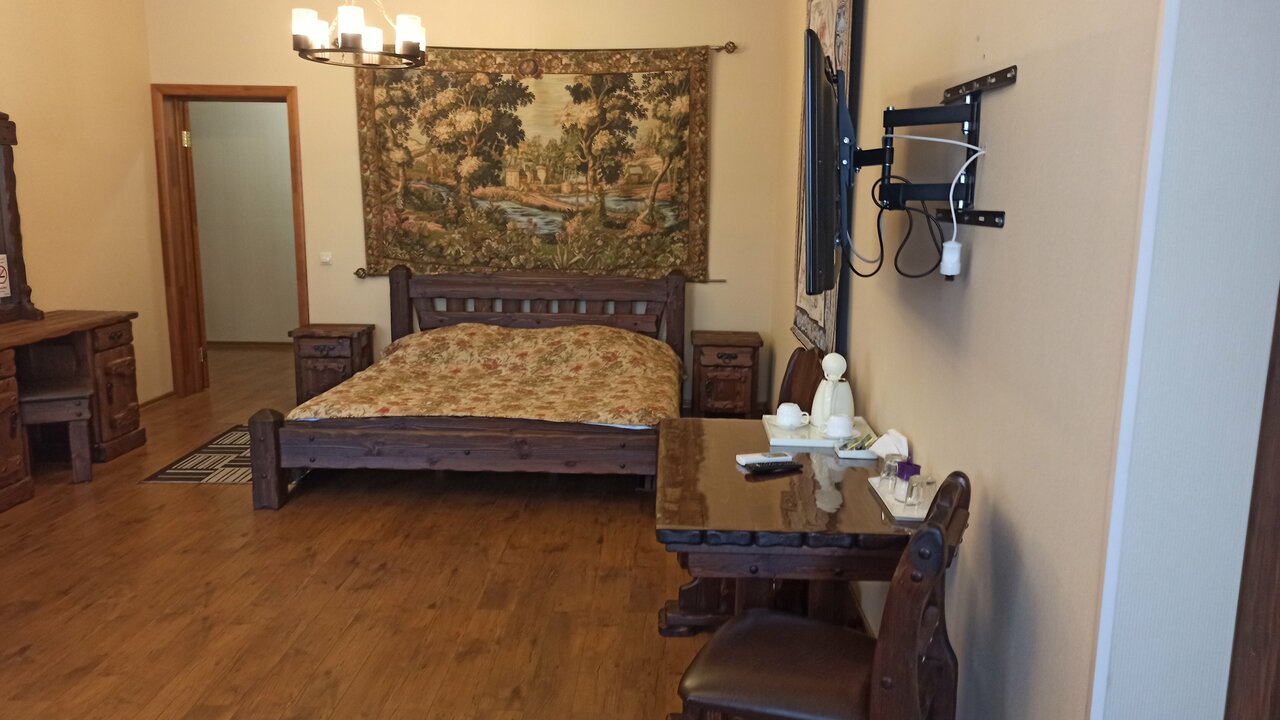 Отличное место! Красивый, просторный номер; удобная кровать (ничего не болит и не затекает утром:). Цены умеренные. Тихо, т.к. отель находится в 5км от города, до центра ехать 14мин на машине. Персонал приветливый, предложили завтрак на выбор (входит в стоимость). Есть баня и место для шашлыка во дворе. Спасибо сотрудникам!