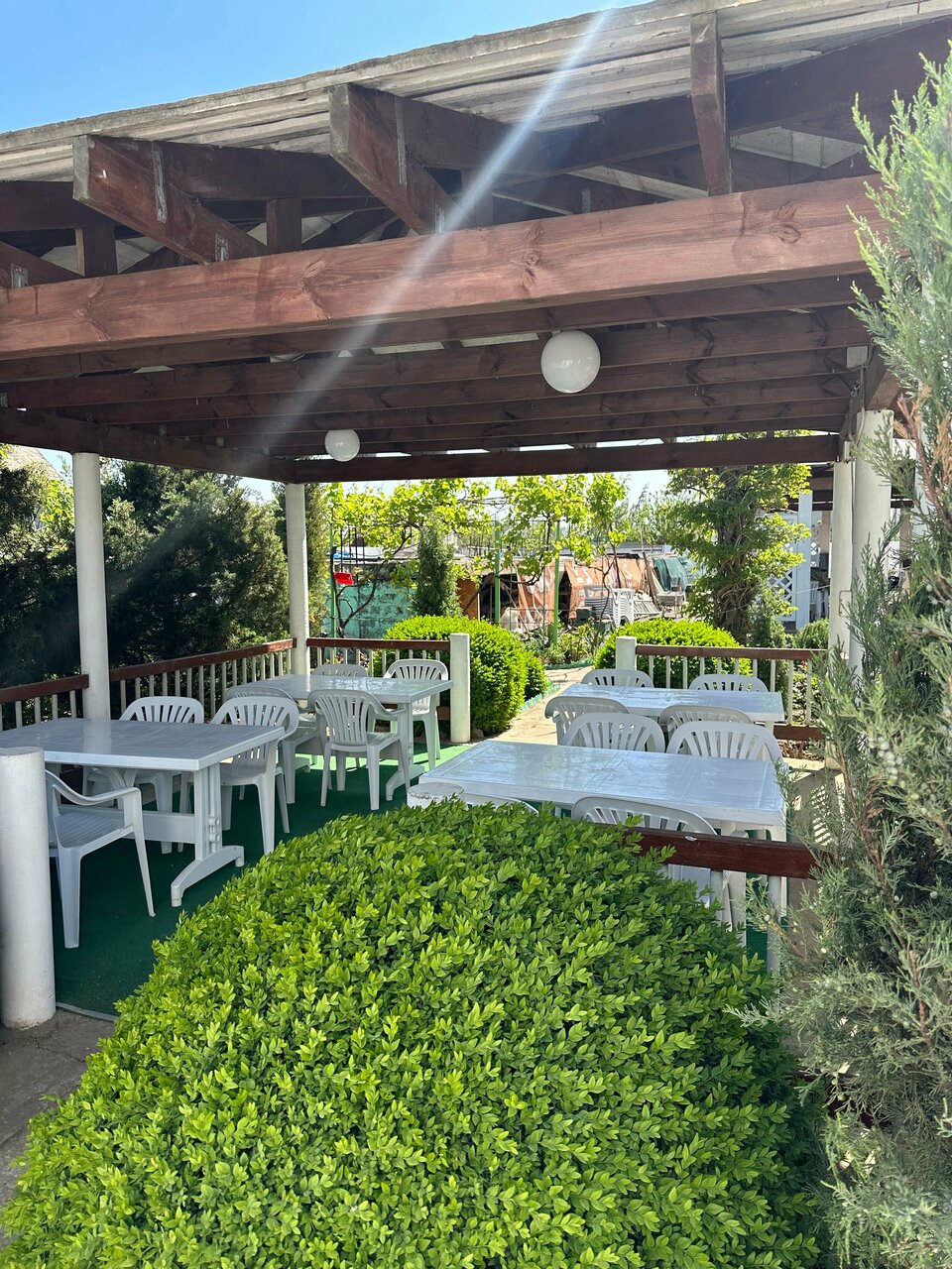 Отдыхали в 2019 году с 28 августа по 2 сентября. Условия проживания на отлично. Возможно питание на месте. Вкусно готовят и порции очень большие. Ухоженная территория, много зелени, игровая детская площадка, несколько уличных террас. Море рядом, теплое. Пляж песчаный, народу мало. Заход мелкий, очень удобно для маленьких детей.