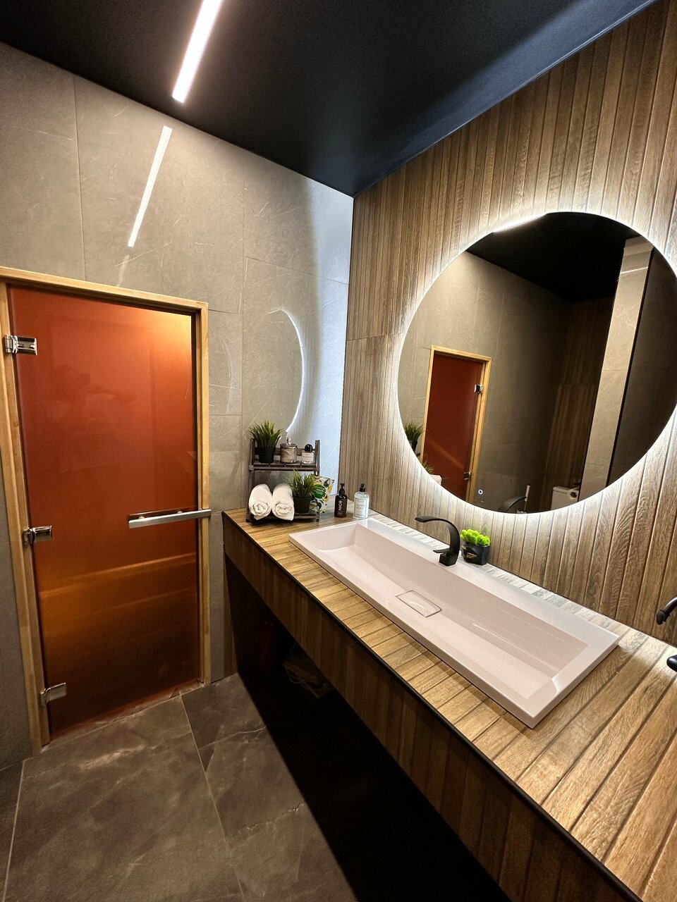 Недавно арендовали современный новый дом, впечатления остались исключительно положительные! Атмосфера уединения и спокойствия, все новое, что определенно радует. Большая ванна при входе — это отдельная изюминка, позволила насладиться видом ночного Воронежа через витражное окно. Чан на улице, оборудованная мягкая веранда, мангальная и костровая зоны, сауна внутри дома — все продумано до мелочей. Хочу выразить благодарность хозяину дома, сделано ВСЕ для комфортного отдыха, начиная от хорошей кофе машины, заканчивая качественной посудой. Вернемся сюда 100 %, рекомендую друзьям.